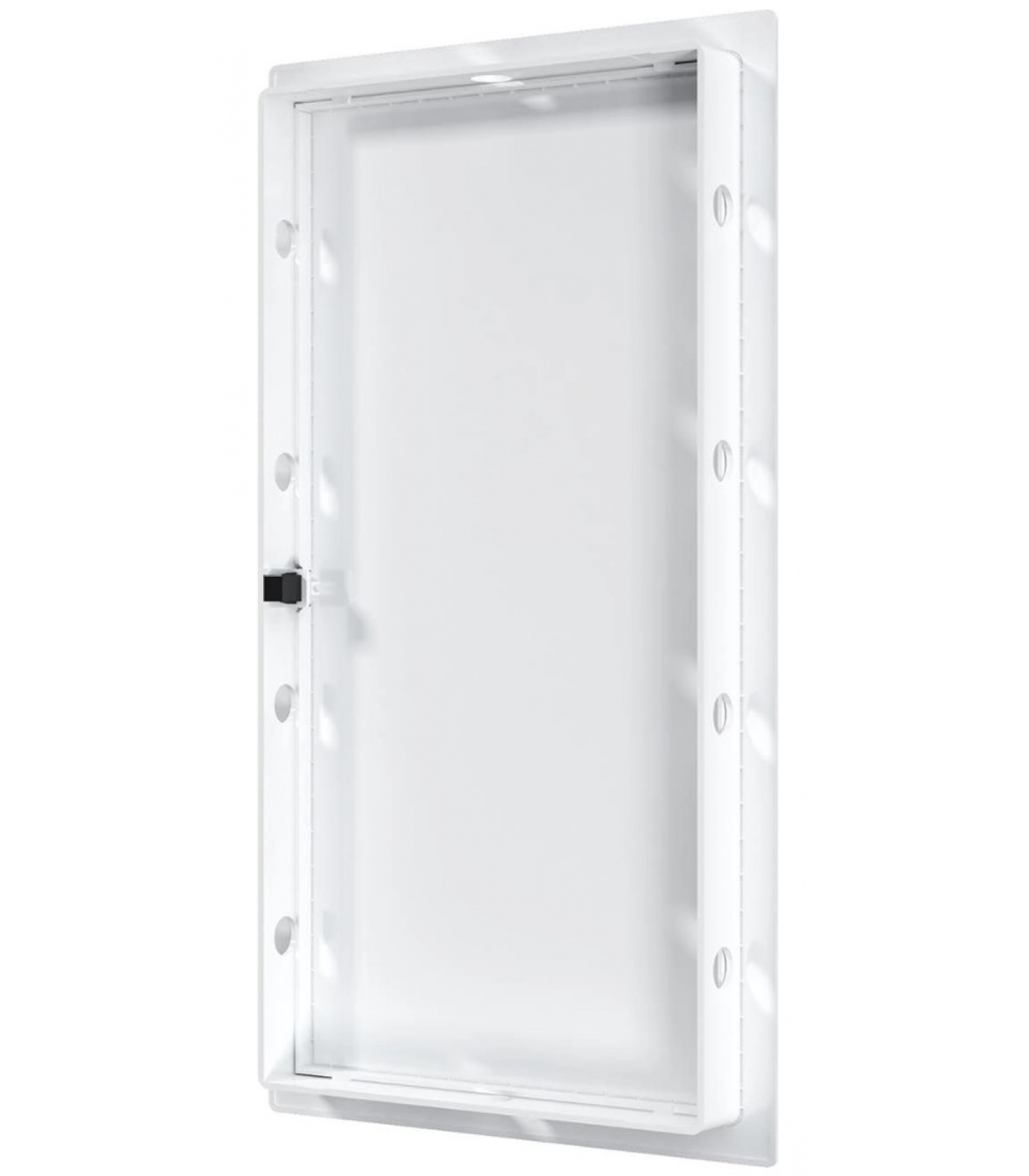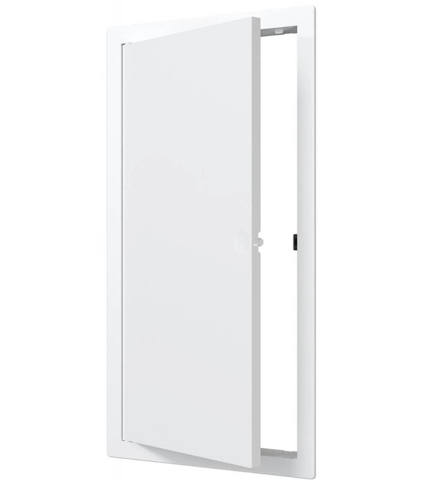 Нажимной замок фиксирует дверцу, не позволяя ей самопроизвольно открываться, за счет чего люк устанавливается не только в стену, но и в потолок.