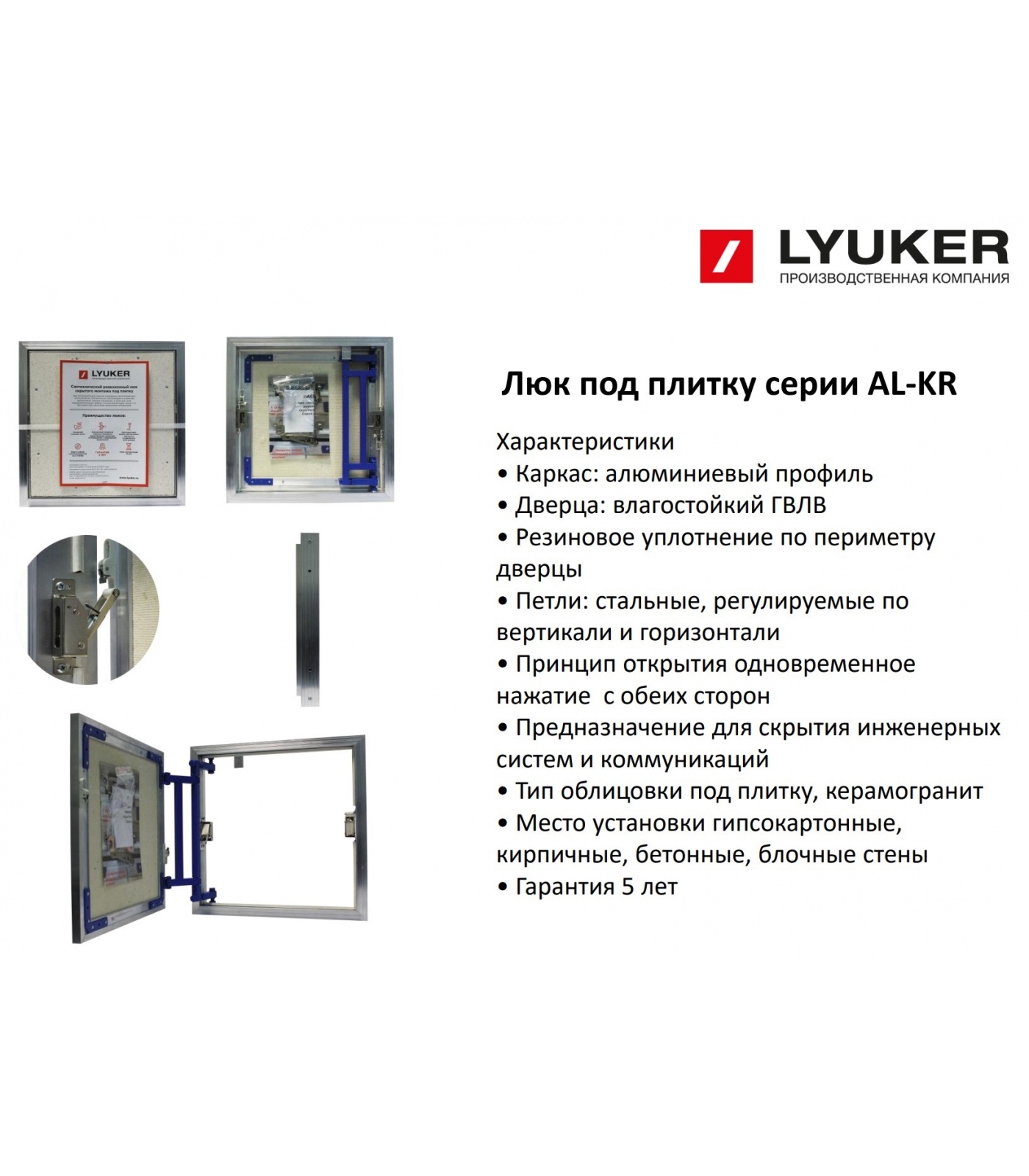 Сантехнические ревизионные люки под облицовку давно себя зарекомендовали с наилучшей стороны, так как ограничений по разновидностям облицовочных материалов практически нет, при соблюдении технических требований по монтажу и характеристик заявленных производителем. Люк серии АL-KR может быть облицован такими материалами как керамическая плитка, мозаика, керамогранит, искусственный и натуральный камень и прочими материалами.