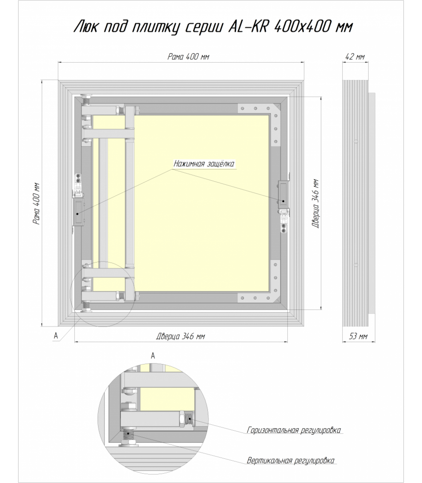 По конструкции петли люк аналогичный серии ALR, что говорит о регулировки петли вверх, вниз, влево и вправо. Преимущество над серией люков ALR, в том, что изменена конструкция внешнего вида профиля, «он увеличен и при этом состав алюминиевого проката не изменился» что позволило производить алюминиевые люки больших размеров с принципом открывания, легкого нажатия на дверцу люка, так же люк оснащен резиновым уплотнителем по периметру дверцы, что придает люку герметичность.