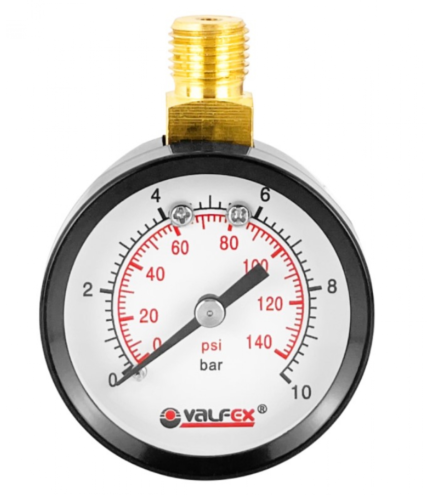 Манометр радиальный верхнее подключение Valfex 50мм, 10bar, 1/4", с контрольной стрелкой