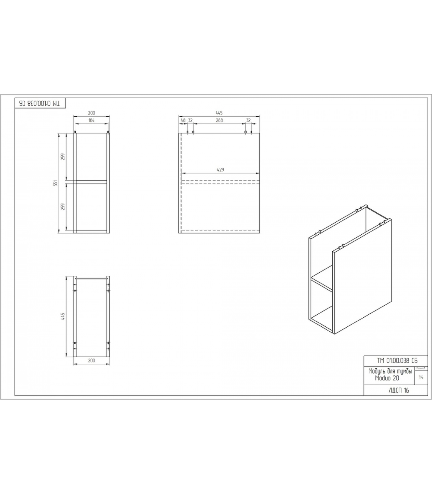 Модуль для тумбы Cersanit MODUO 20, дуб (SB-MD-MOD20-SZ)