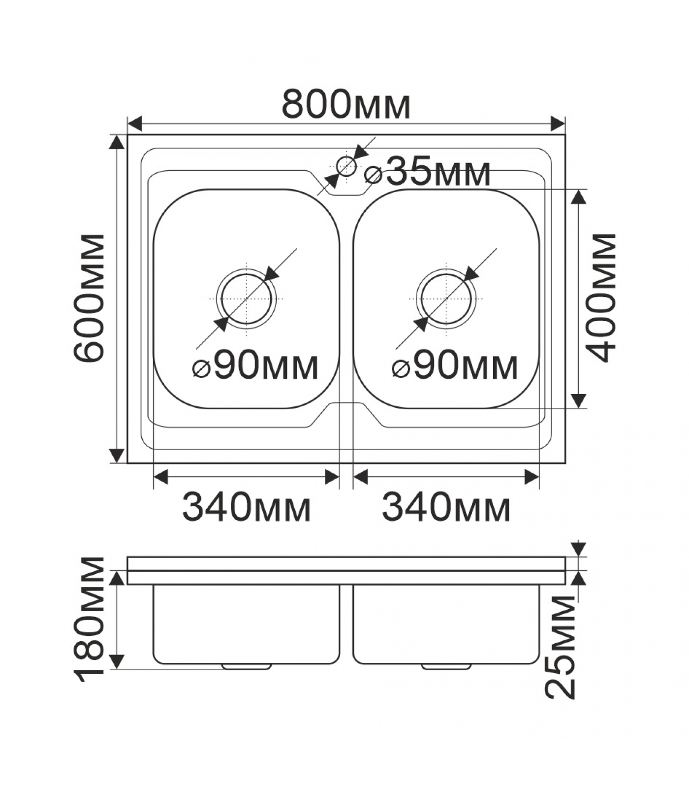 Мойка для кухни MELANA 8060S 0,8/180 две чаши накладная прямоугольная