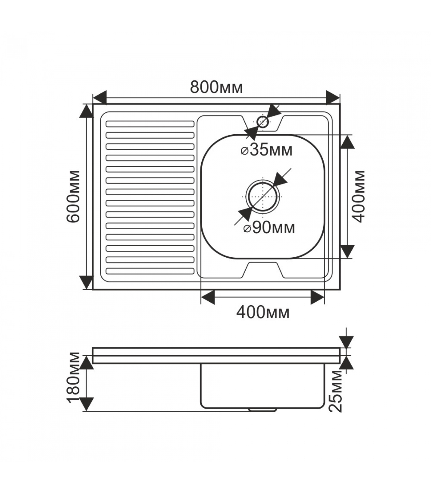 Мойка для кухни MELANA 8060 R 0,8/180 накладная прямоугольная правая
