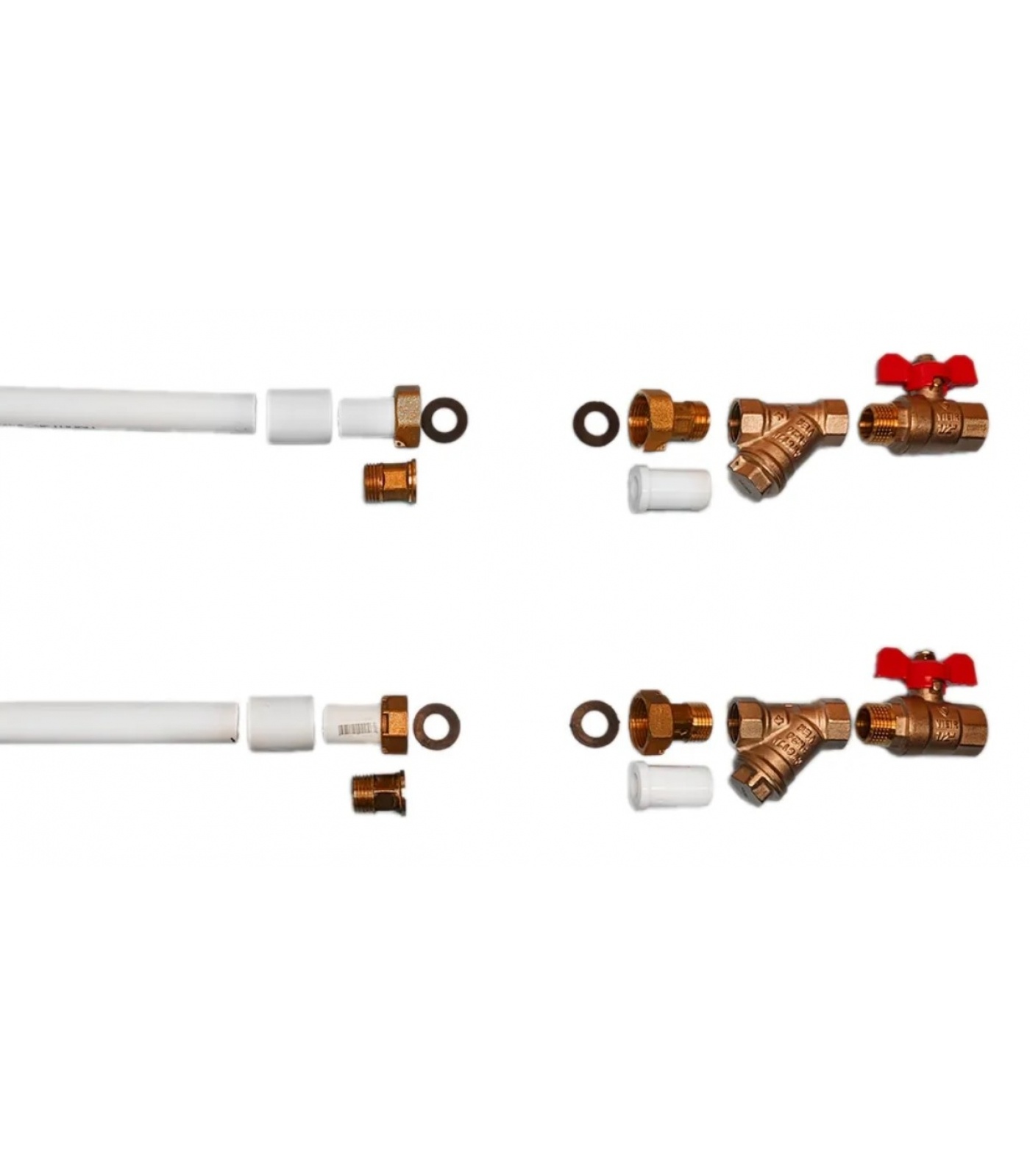 Монтажный комплект для счетчиков ГВС и ХВС с латунными кранами и фильтрами 1/2