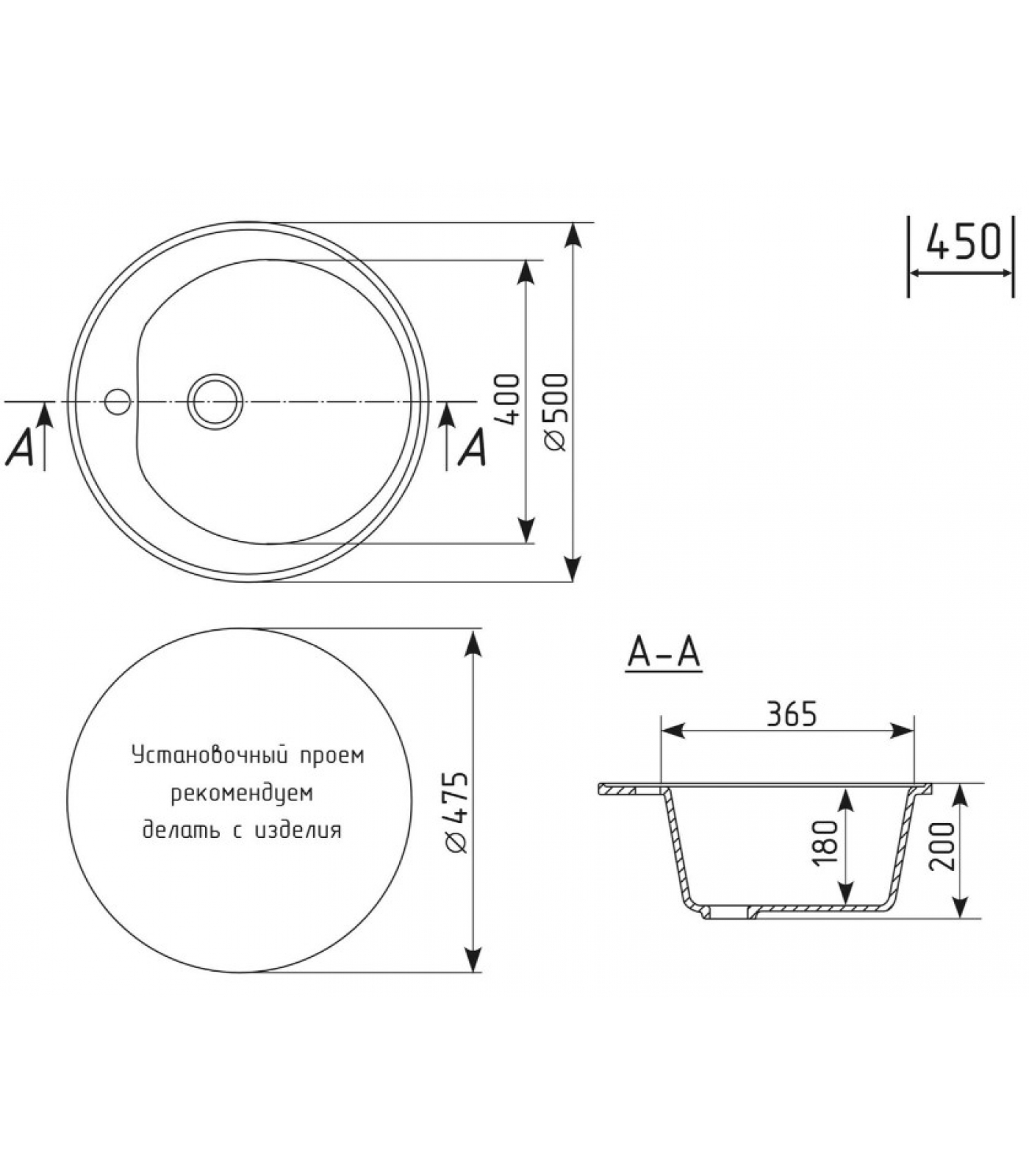 Мойкa ML-GM11 КОМФОРТ круглая, серая (310), 500мм (глуб. чаши 180)