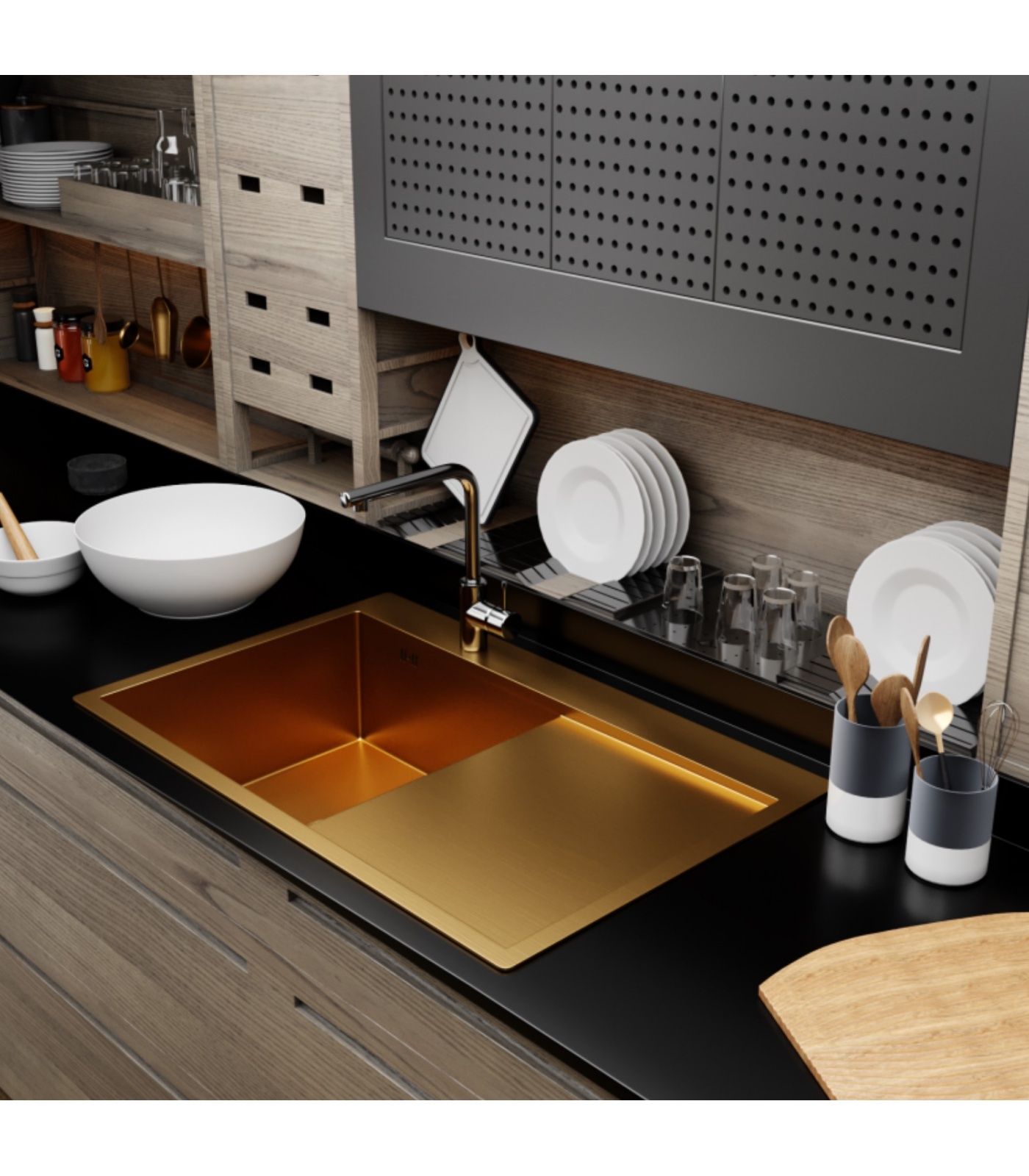 PVD-покрытие уникально тем, что парообразный металл впитывается в поверхность мойки на молекулярном уровне и образует микрослой на поверхности.