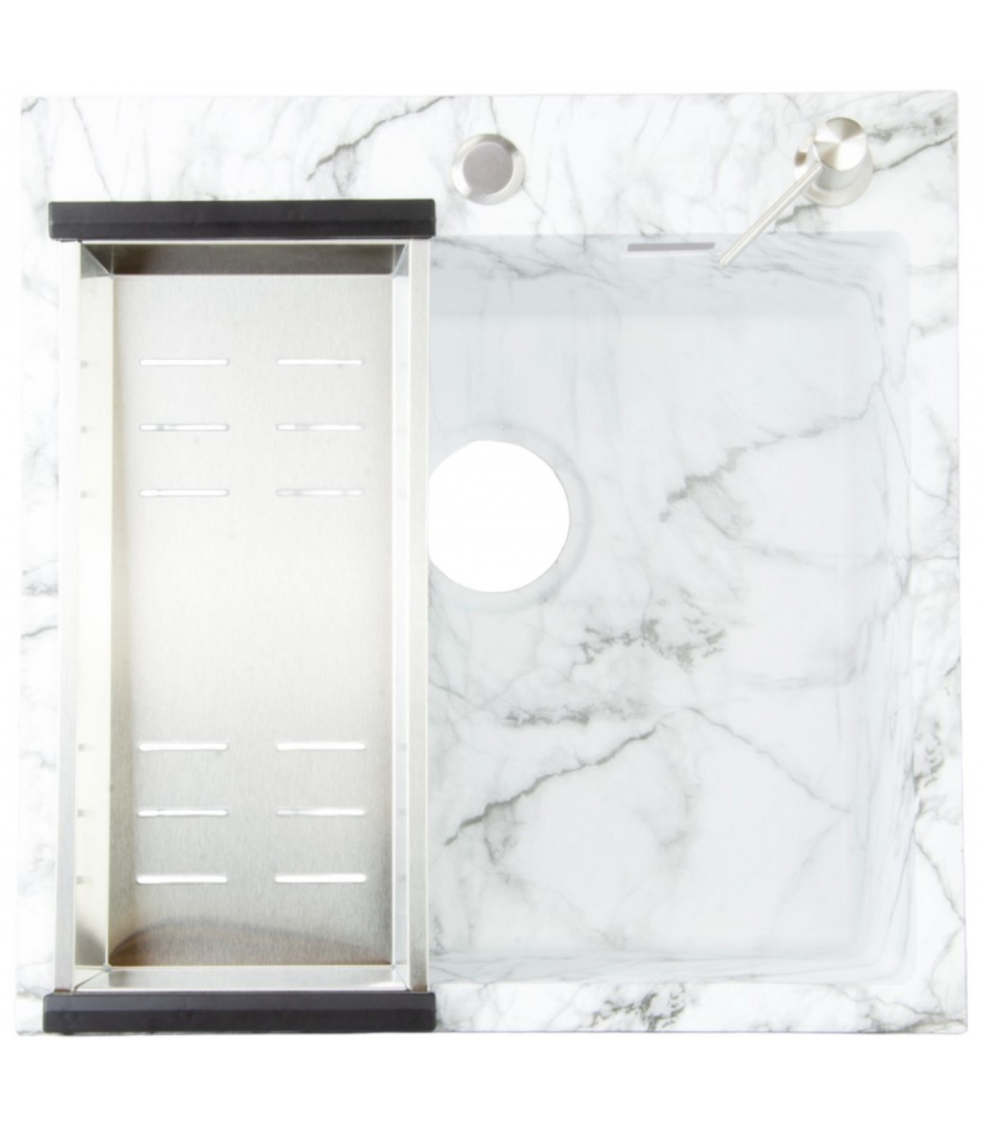 Мойка для кухни Santrek Aqua 50х50х22 (3.0) белый мрамор, сталь, сифон, дозатор, коландер