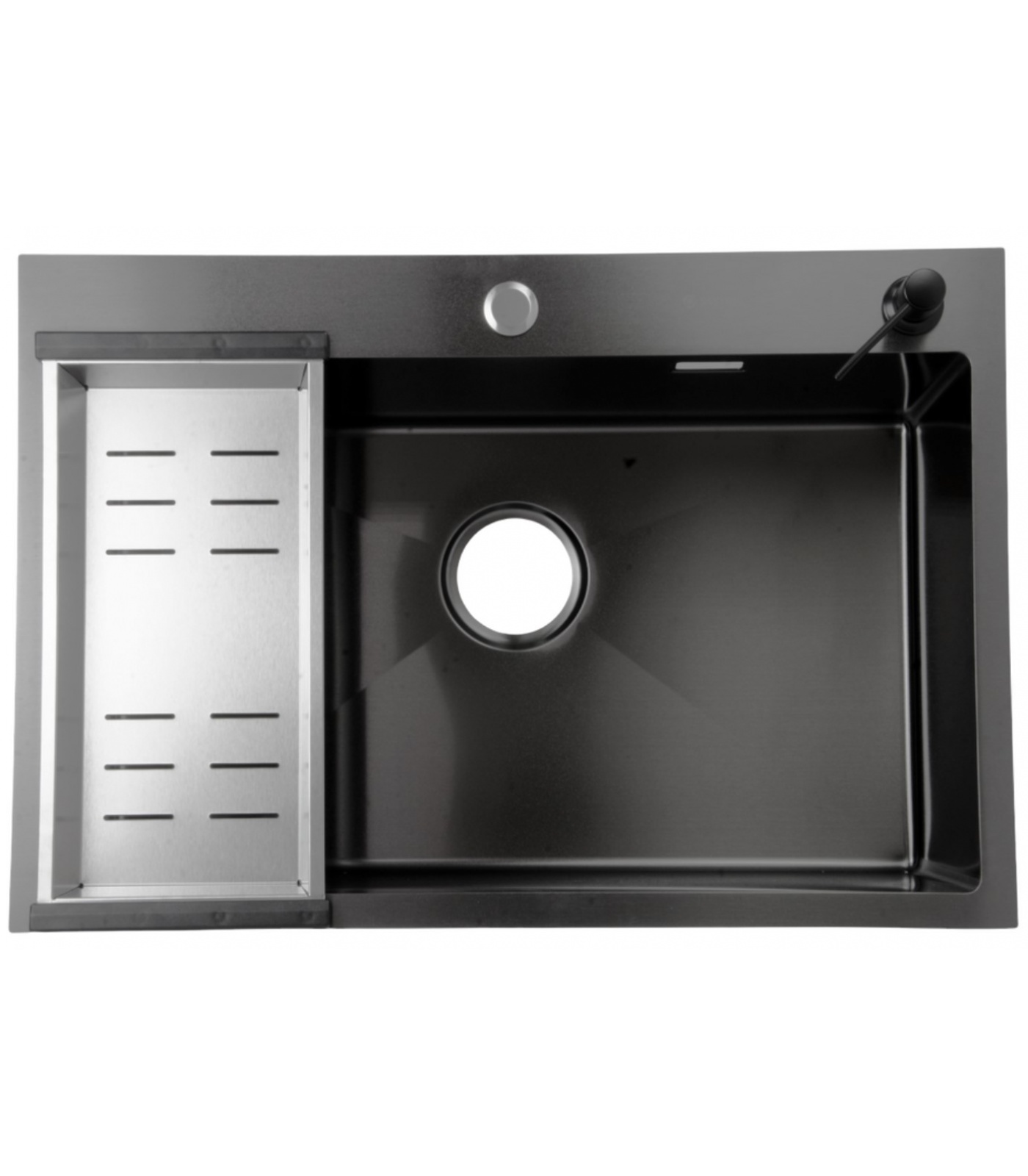 Santrek Aqua D7048HB Мойка нержавеющая врезная 70х48х22 мм (т 3.0) графит + сифон + дозатор + коландер 44х22 мм