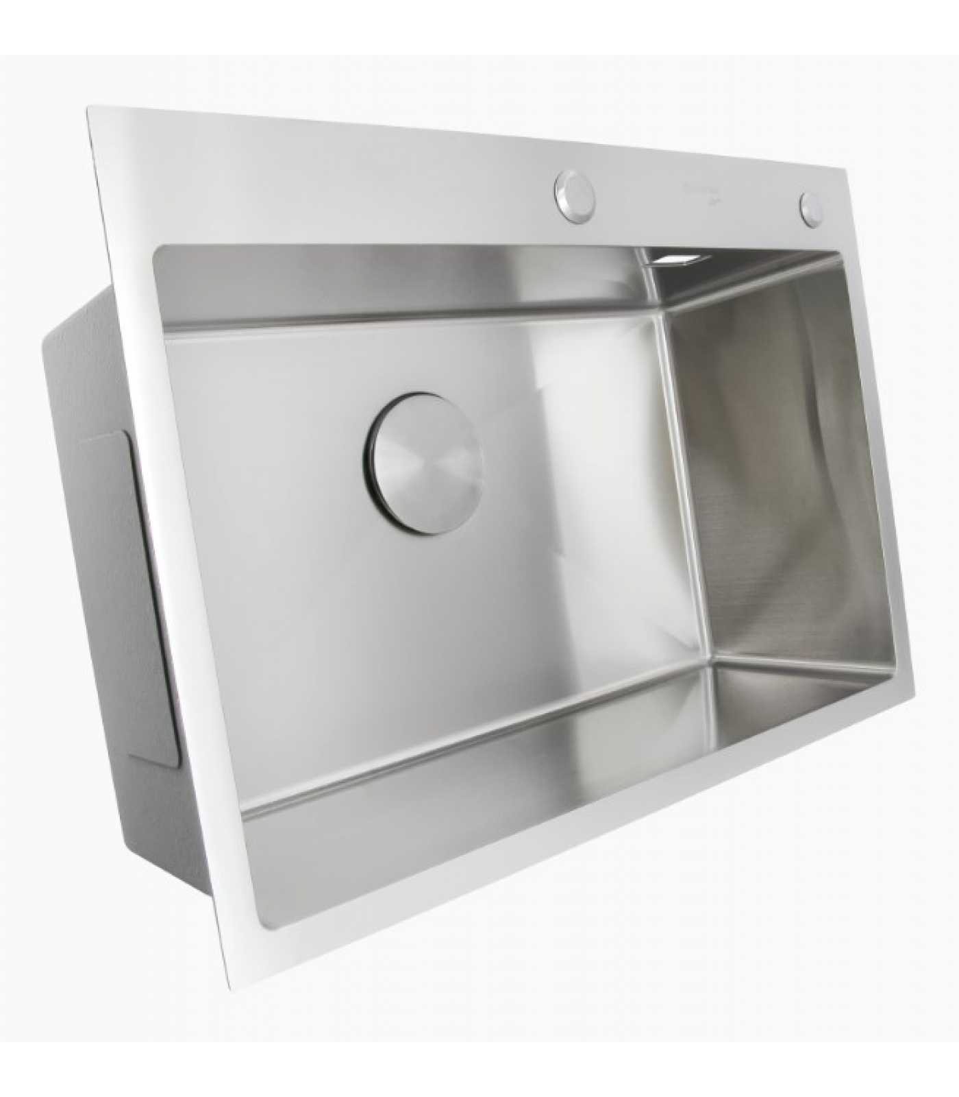 Мойка нержавеющая врезная SANTREK AQUA 700х480х220 т 3,0 Сатин D7048NS + сифон + дозатор + коландер 420х220