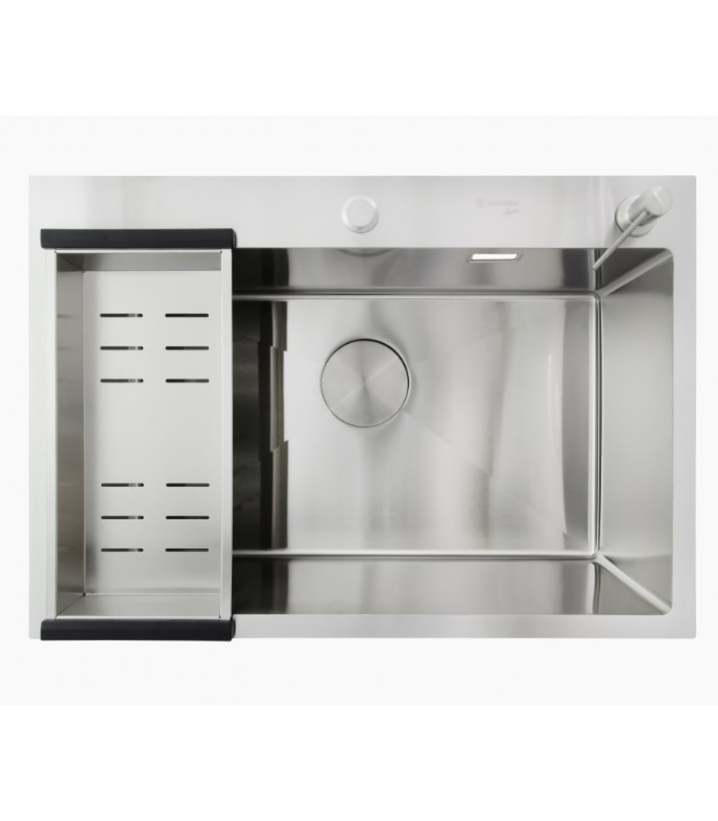 Мойка для кухни Santrek Aqua 70х48х22 (3.0) сатин, сталь нержавеющая, сифон, дозатор, коландер