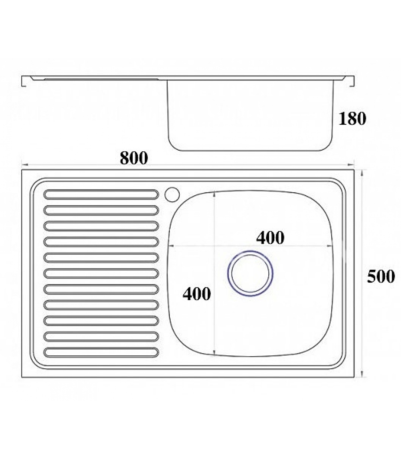 Большая накладная мойка 80х50 подходит для кухонных шкафов с узкой столешницей, ширина которой 50 см.
