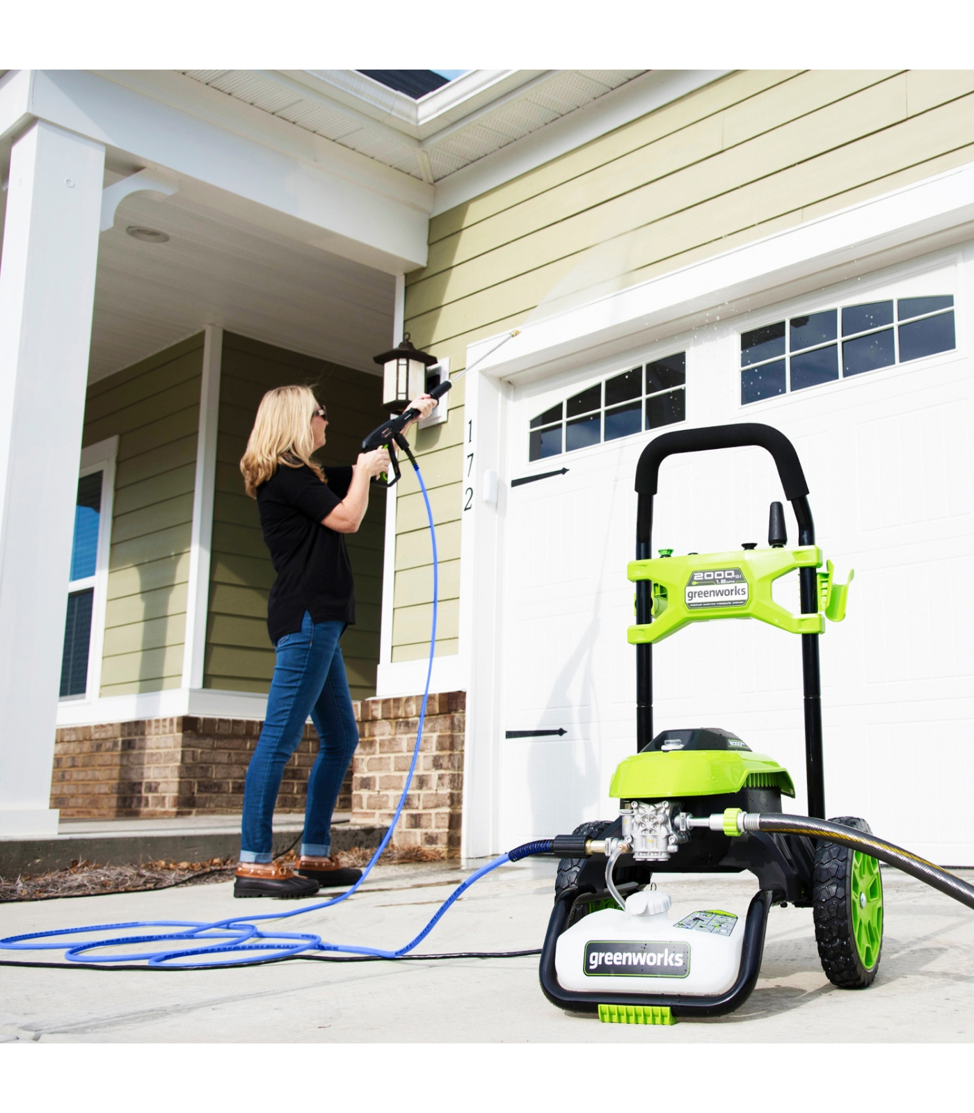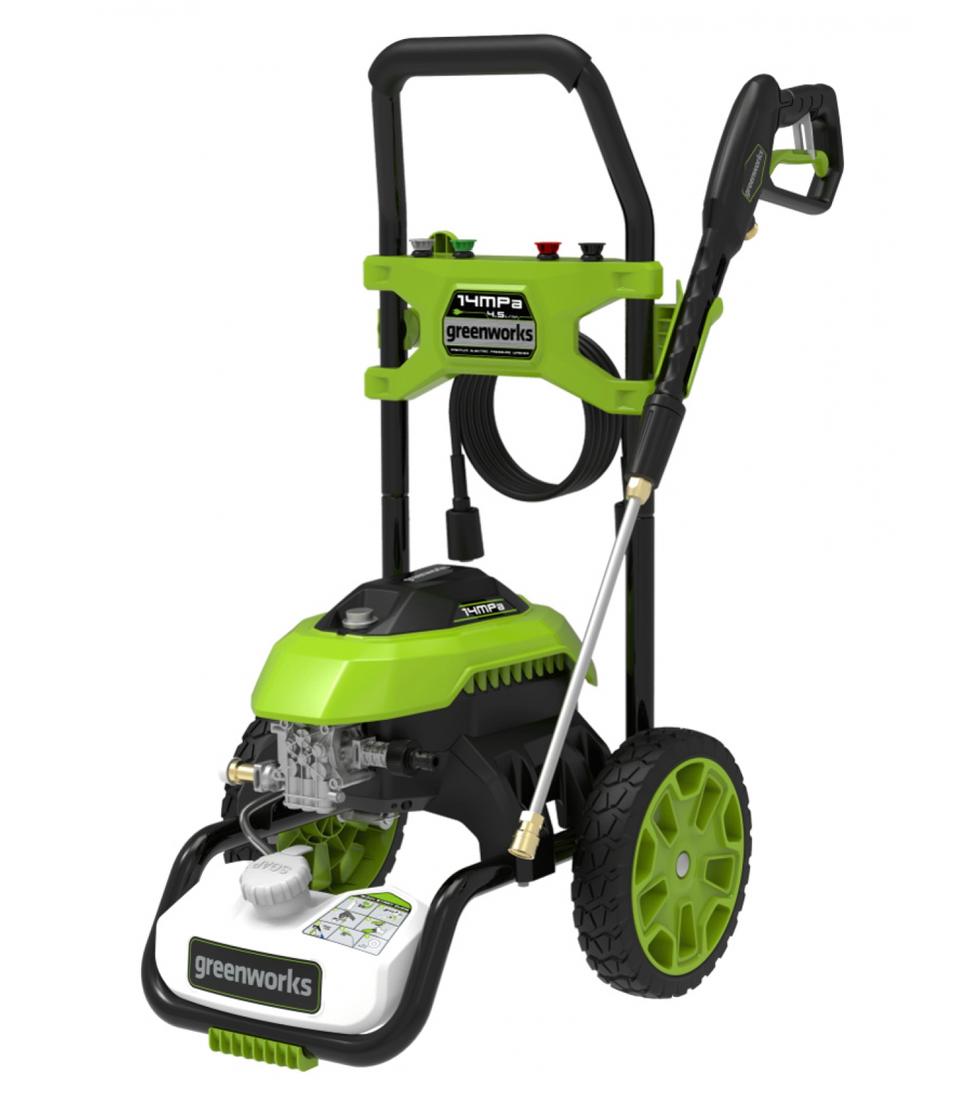 Мойка высокого давления Greenworks Арт. 5105507 — достаточные давление и производительность для мойки легковых автомобилей, среде размерных внедорожников, мотоциклов, велосипедов, очистки придомовых территорий, дорожек, площадок, садового инвентаря.