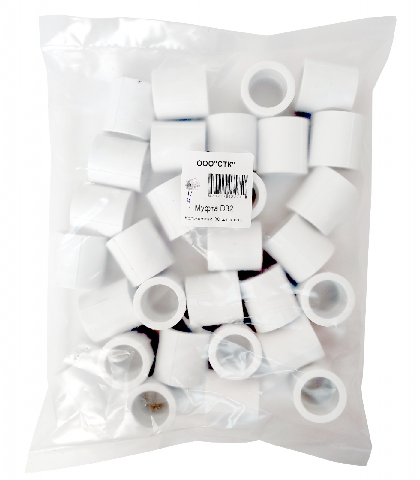 Муфта 32 мм СТК PP-R белый, пакет 30 шт