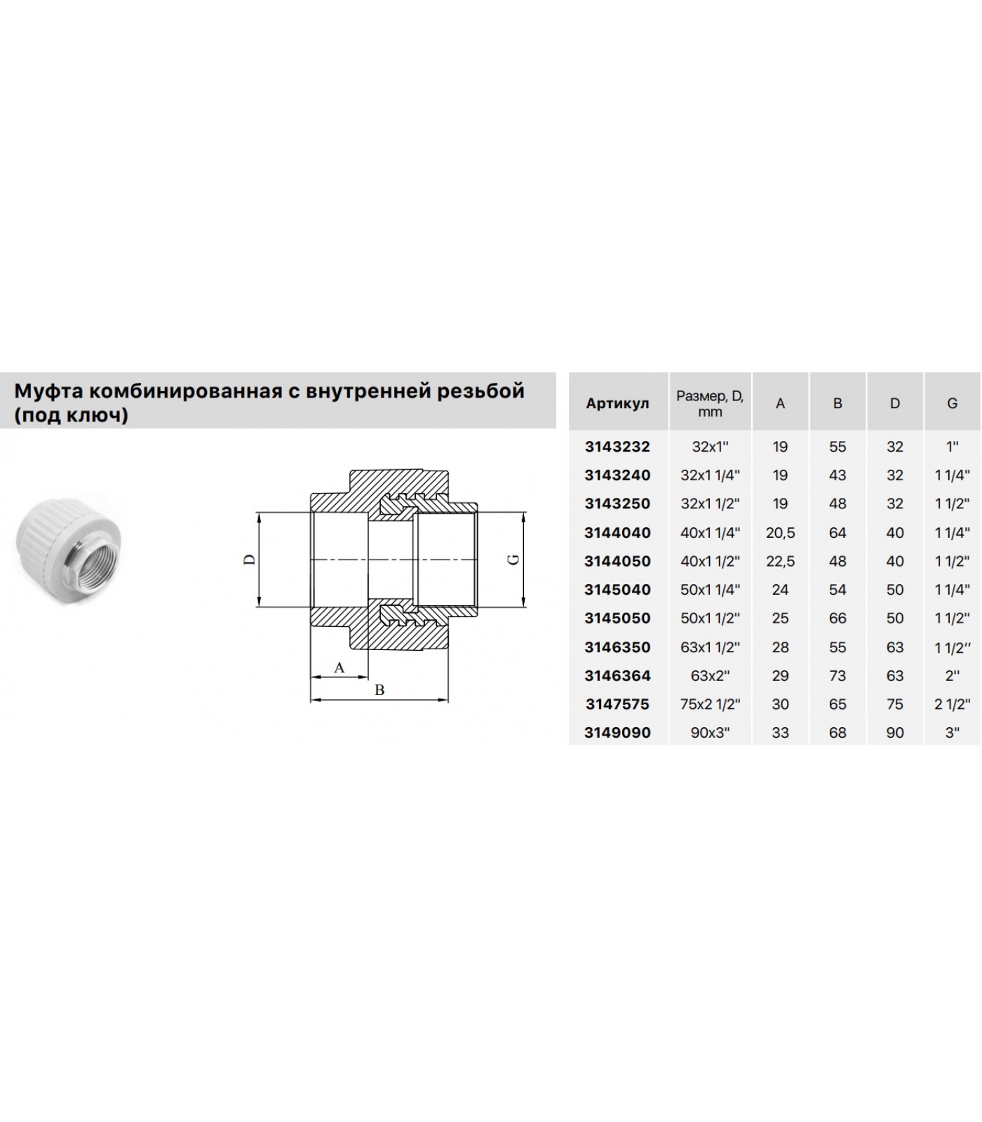 | Тип товара (товар) | Муфта с резьбой (полипропилен) |