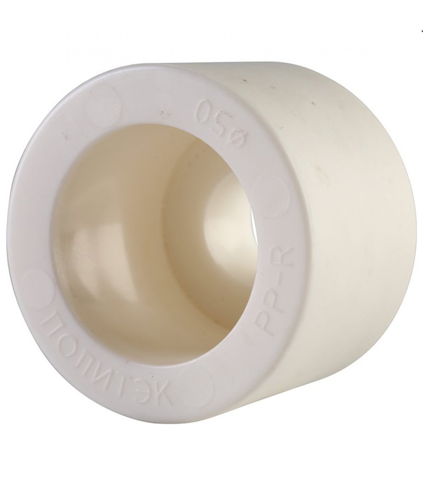 Муфта переходная наружная/внутренняя Политэк для полипропиленовых труб (белая) PPRC диаметром 50 мм на 20 мм