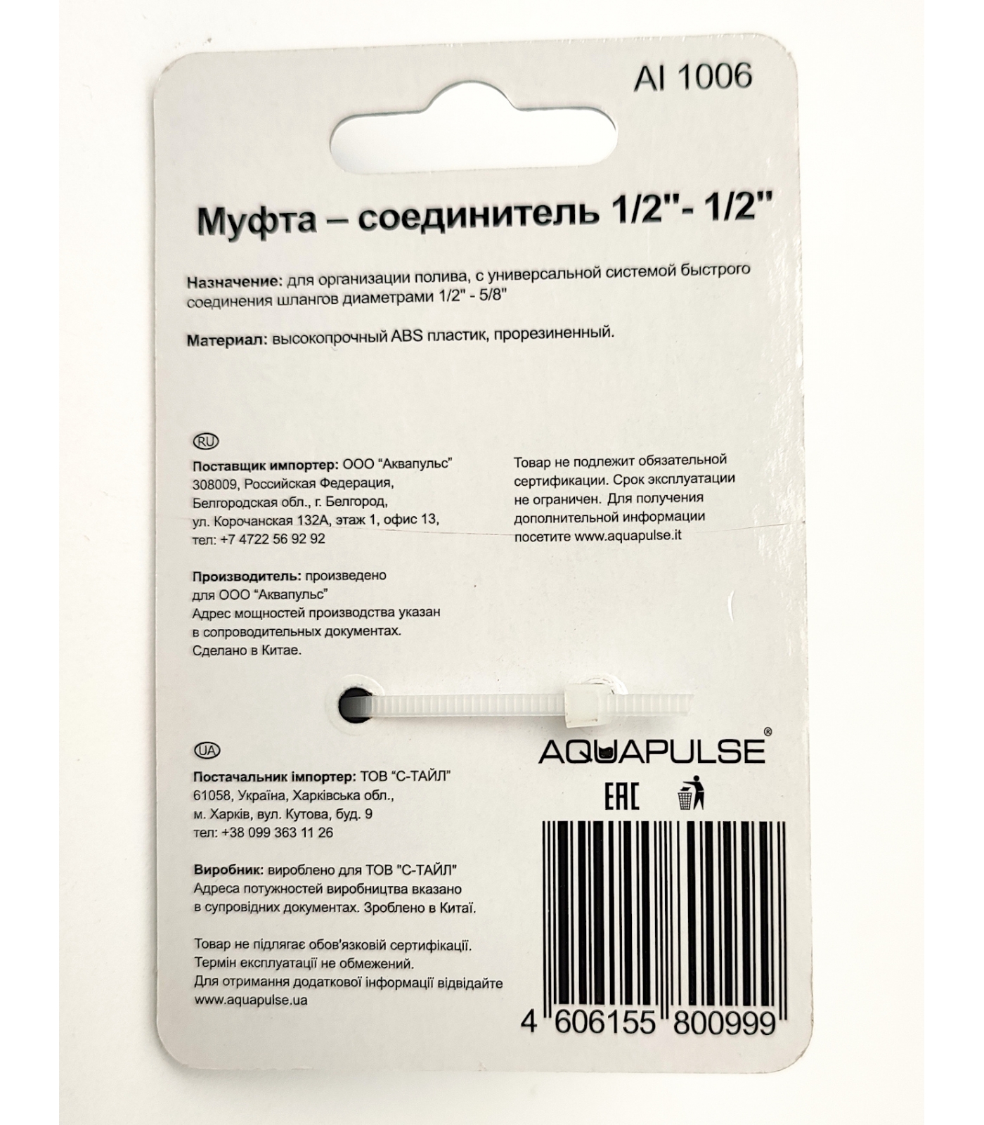 Муфта соединитель 1/2-1/2 AquaPulse AI 1006