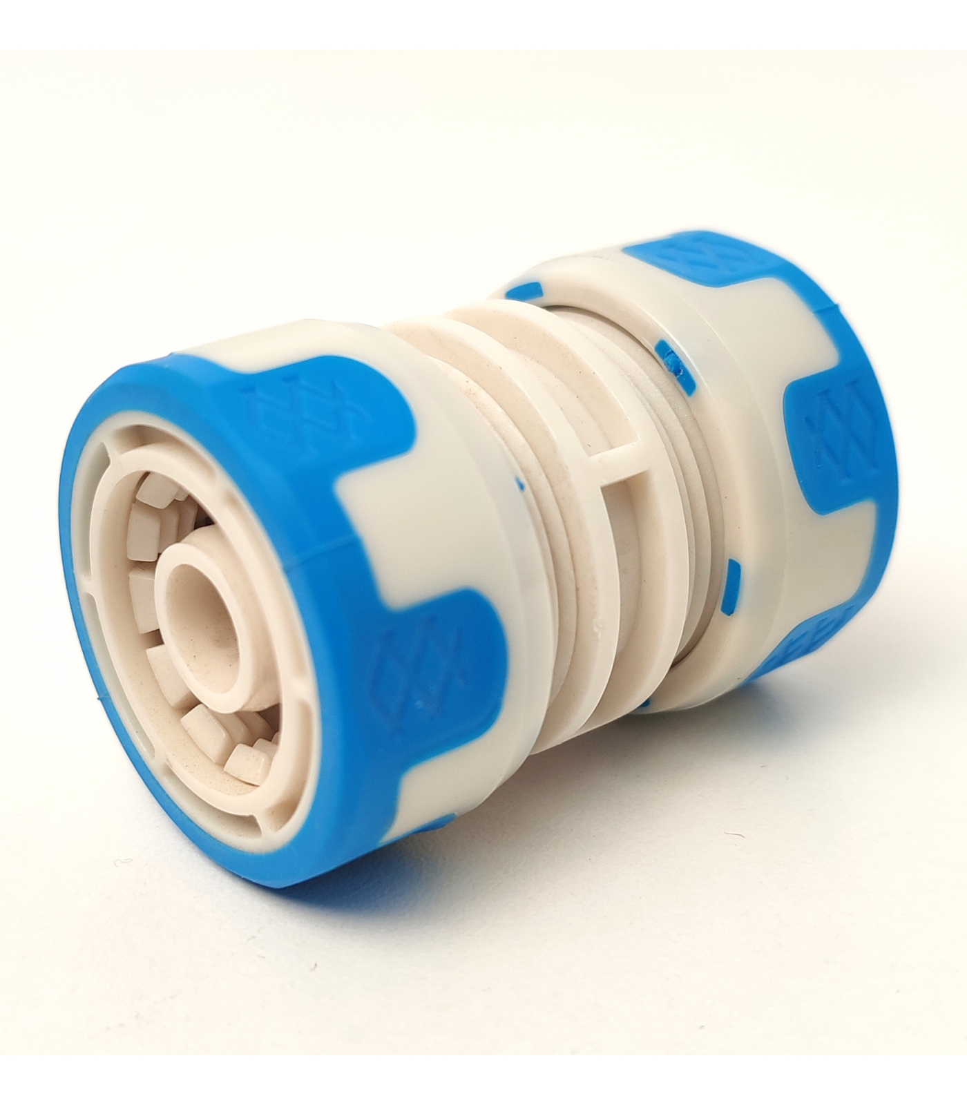 Муфта-соединитель 1/2’’ – 1/2’’ для поливочных шлангов выполнена в виде классической модели, из высококачественного и ударопрочного пластика ABS, оснащена нескользящим покрытием. Данная модель позволяет очень быстро заменить повреждённые участки, или нарастить необходимую длину используемого шланга. Новая форма зажимной гайки позволяет прочно зафиксировать муфту со шлангом. Зубья цанги специальной формы обеспечивают надёжное закрепление тонкостенных шлангов. Коннектор соединяет шланг с шлангом.