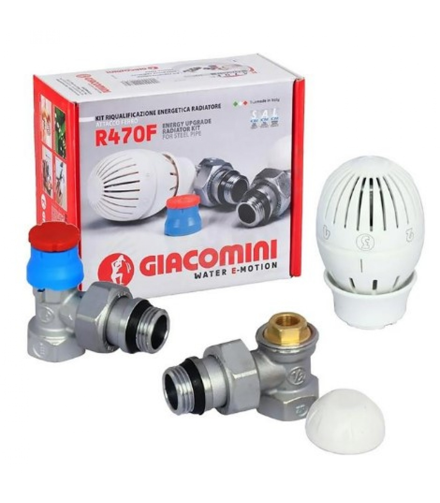 Термостатический комплект Giacomini R470F позволяет осуществлять автоматическое регулирование подачи теплоносителя в радиатор, поддерживая температуру в помещении на заданном уровне.