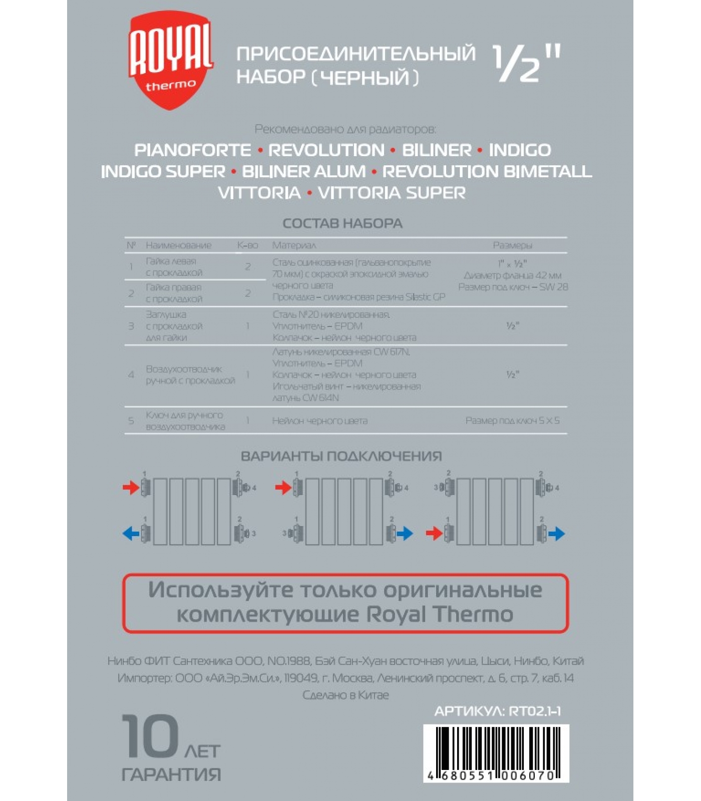 Royal Thermo Монтажный комплект радиатора универсальный RT 1/2 Черный.