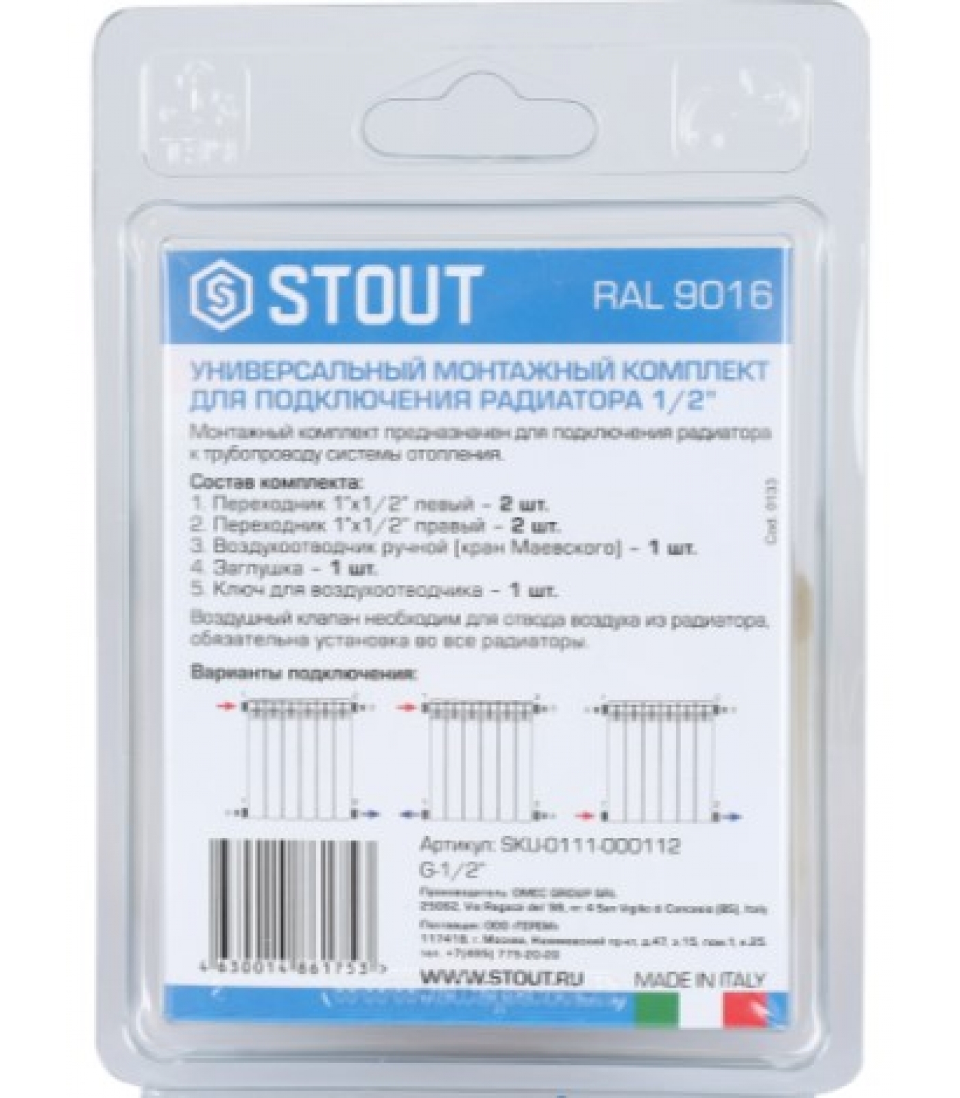 Набор радиаторный универсальный 1/2" Stout 7 элементов, без кронштейнов