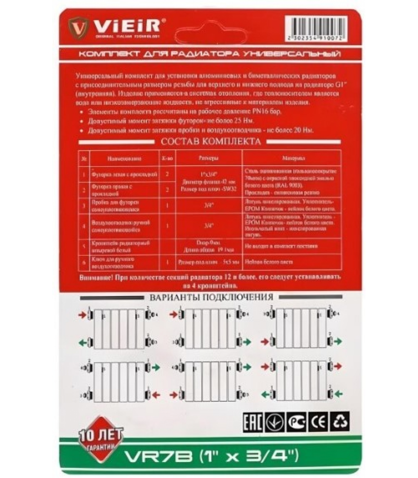 Vieir Комплект для подключения радиаторов (Набор из 7 предметов)