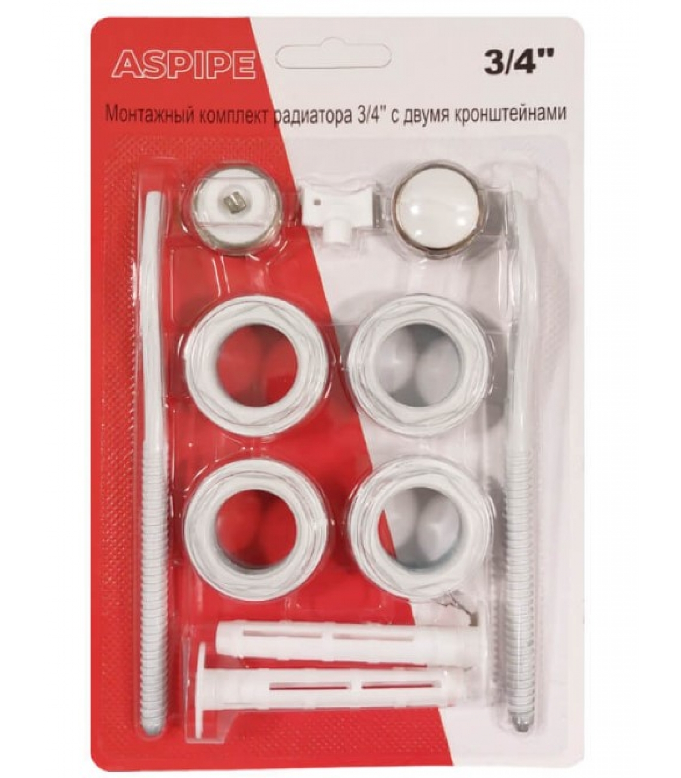 Набор радиаторный универсальный 3/4" Aspipe 11 элементов, c 2-я кронштейнами