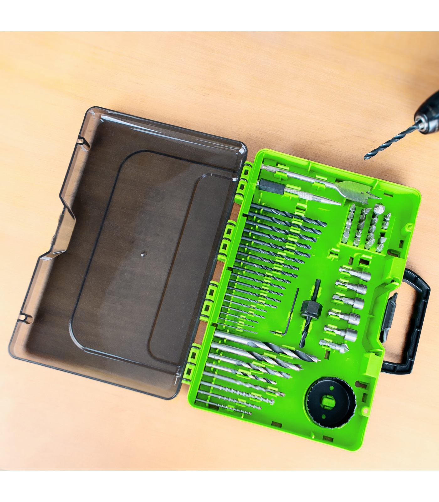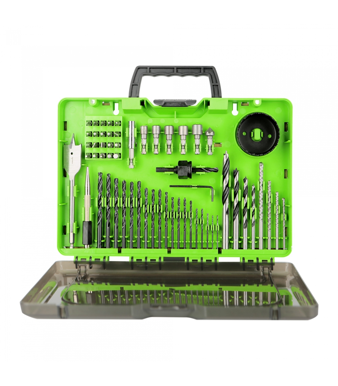 Набор свёрл, бит и коронок в кейсе Greenworks арт. 2944507, 60 предметов