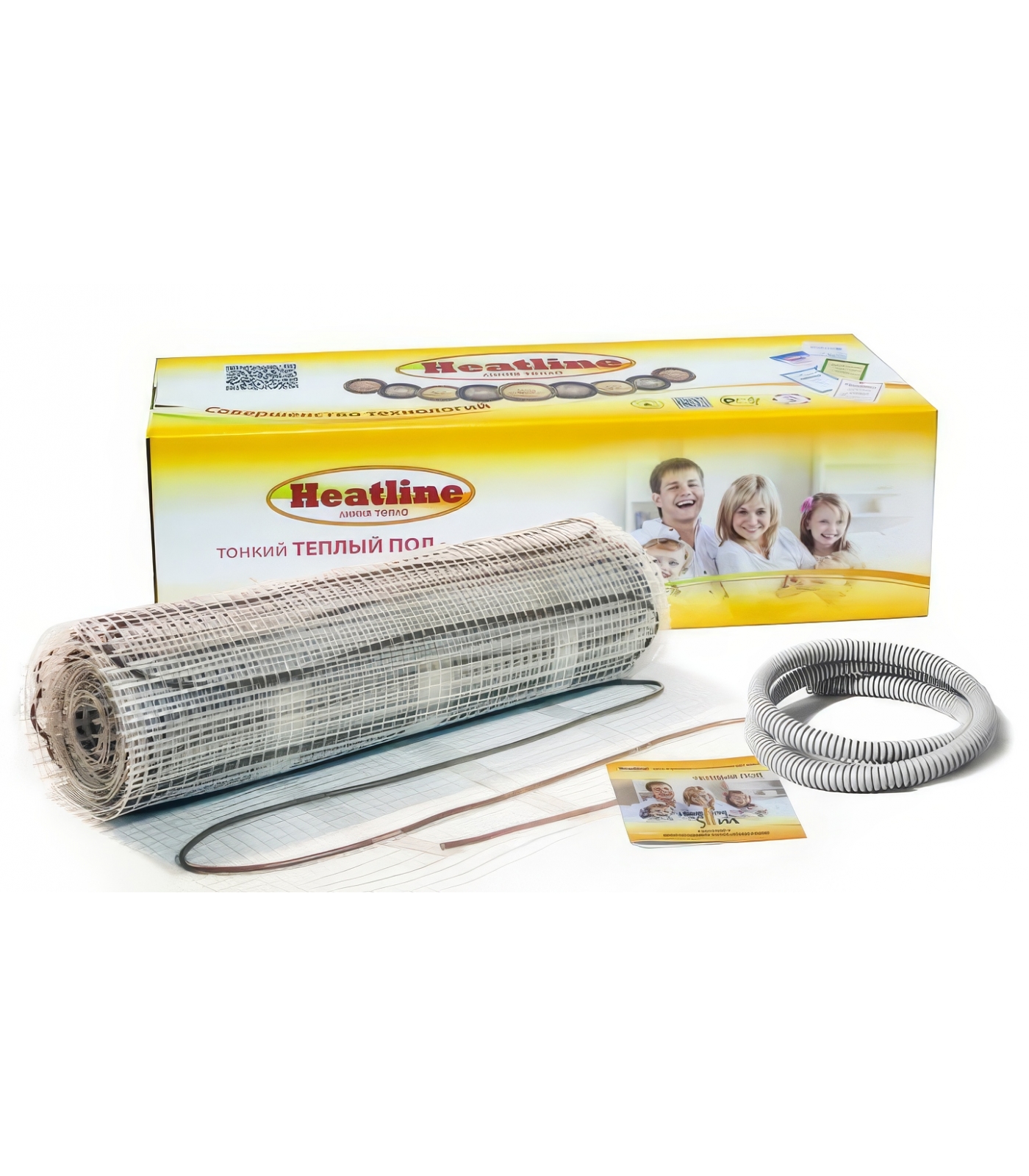 Теплые полы, компании Heatline, изготовлены в виде нагревательной секции, которая уже установлена на армирующую сетку. Такие полы монтируются сразу в клей, находящийся под декоративной плиткой.