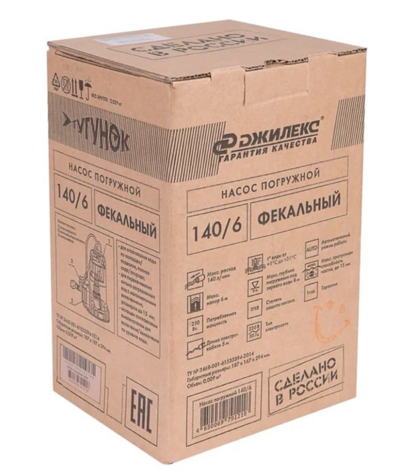 Насос 140/6 фекальный Джилекс Тугунок 0,25 кВт, до 140 л/мин, напор до 6 м