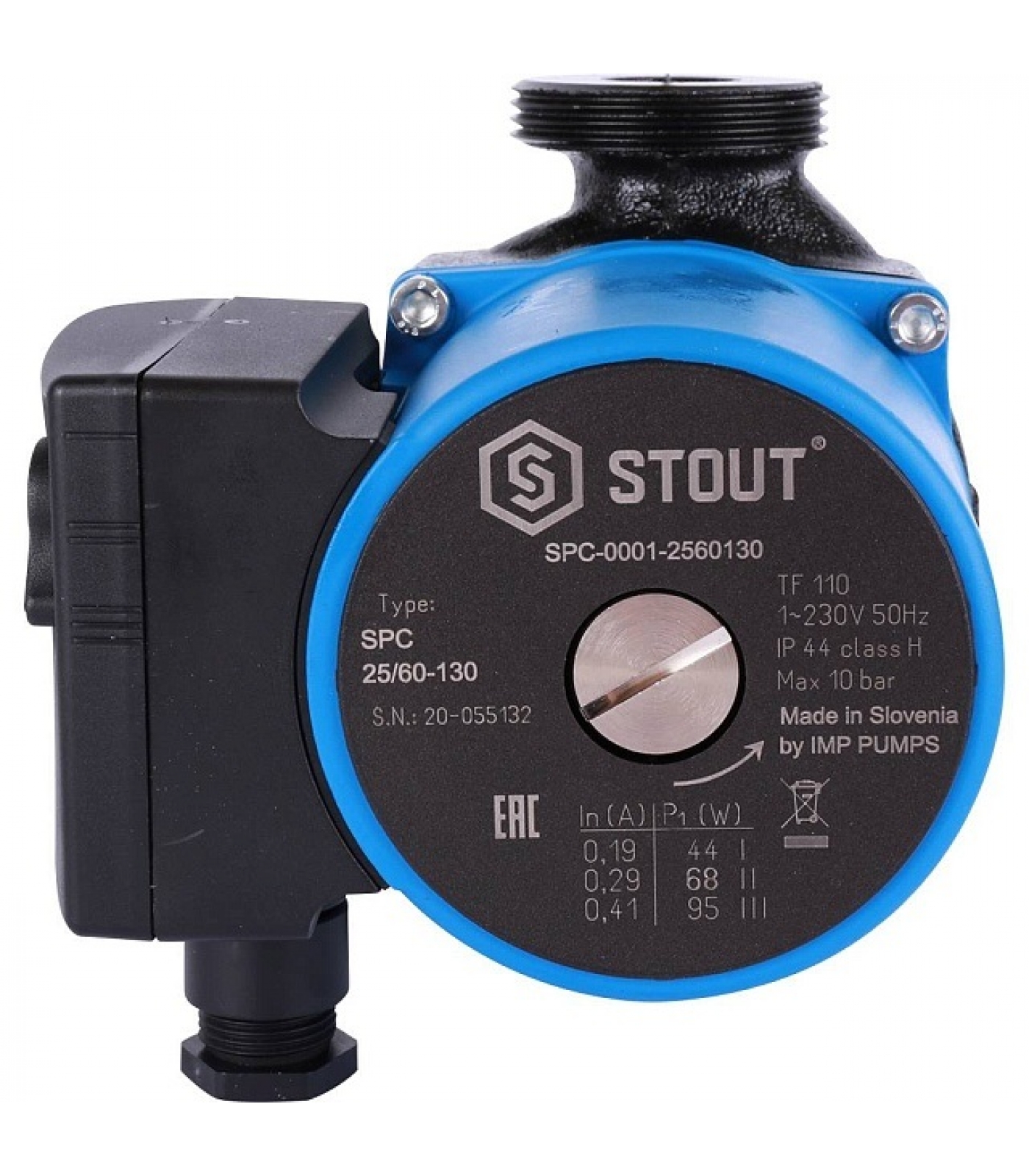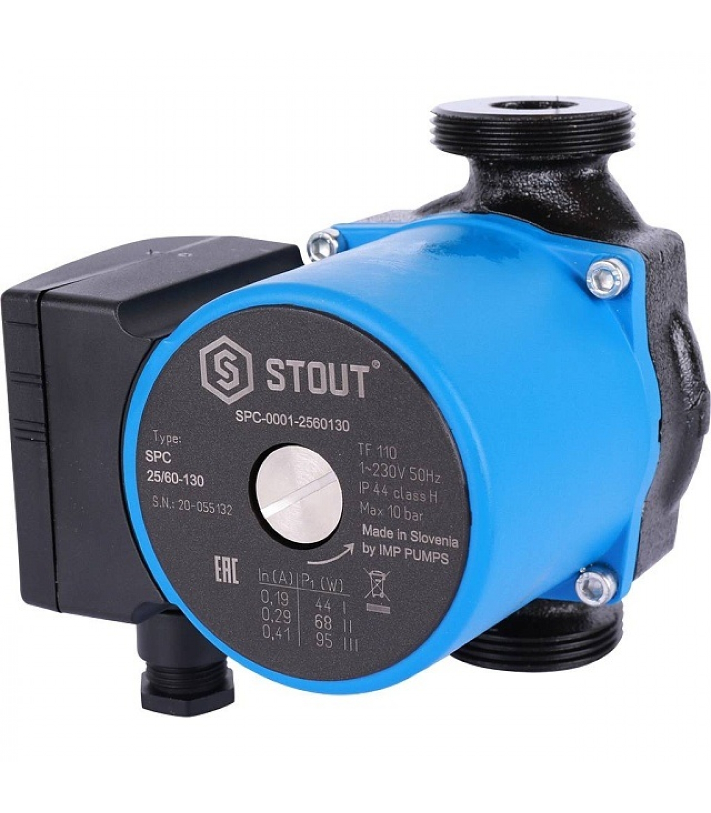 Циркуляционный насос STOUT 25/60-130 SPC-0001-2560130 RG008V60G5F4BQ используется для циркуляции теплоносителя температурой до +110°С в системах отопления и горячего водоснабжения.