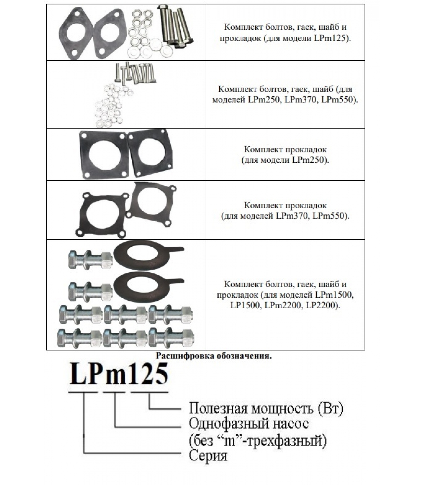 Комплект болтов, гаек, шайб и прокладок – 1 комплект;
