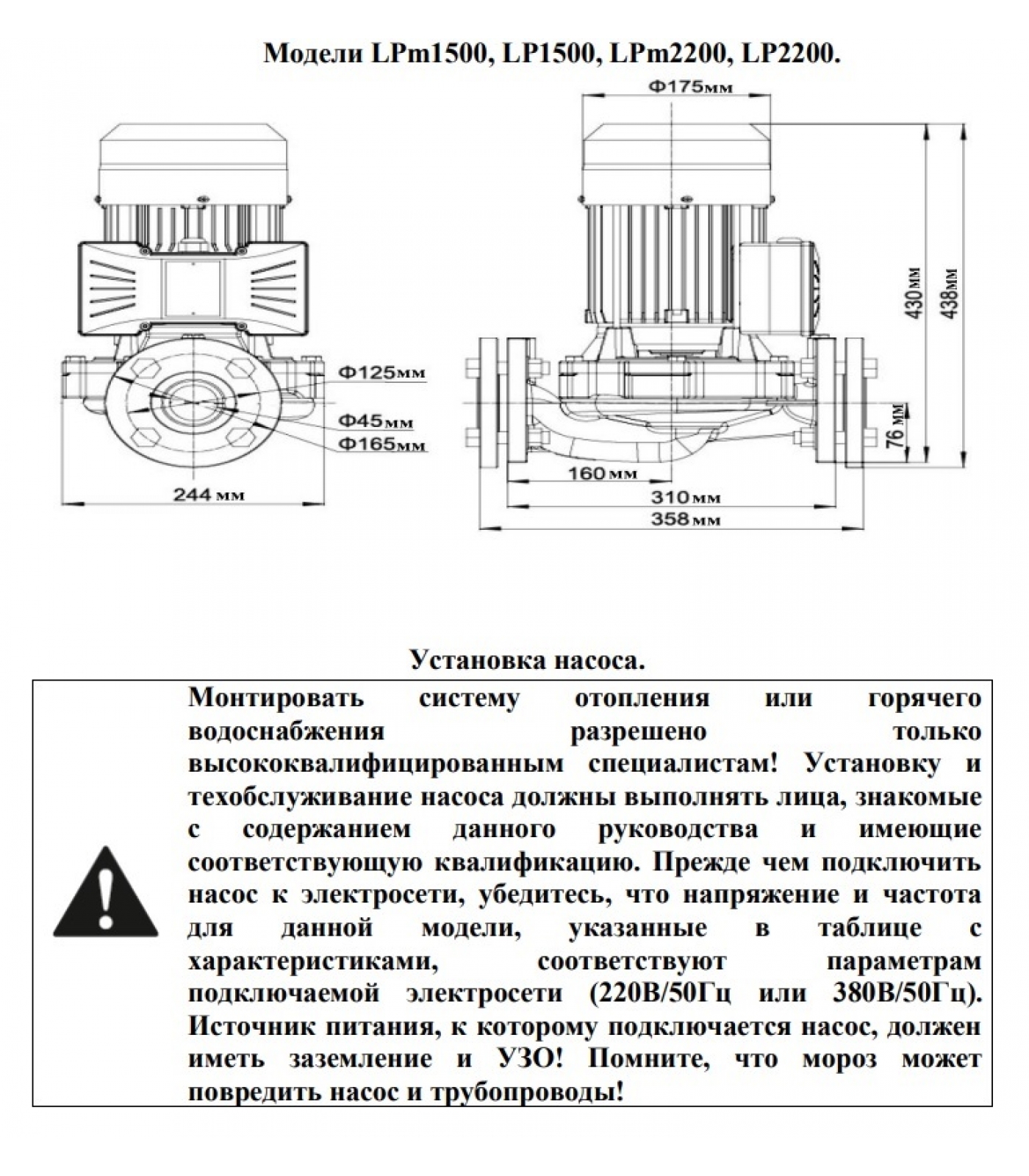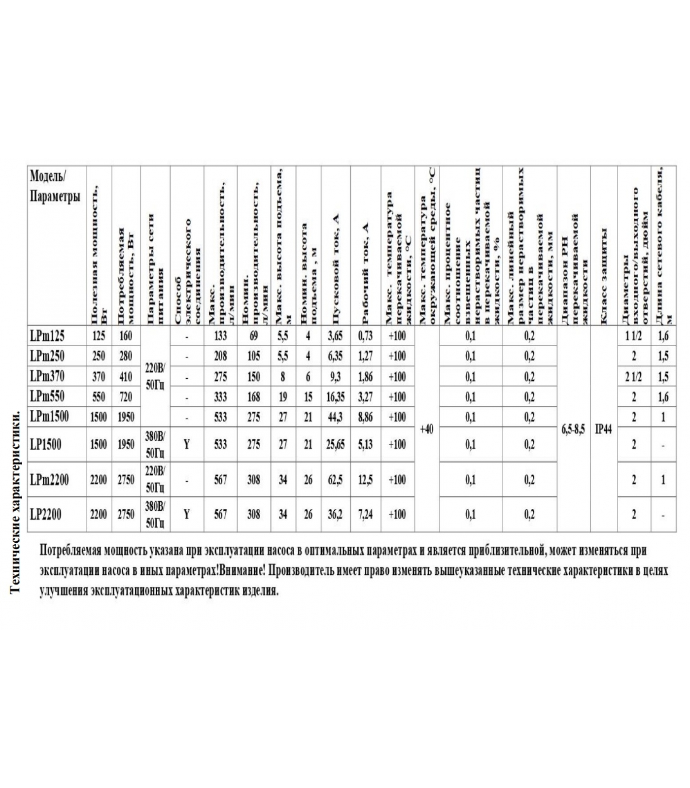 Данные насосы не предназначены для питьевого водоснабжения, перекачивания агрессивных и абразивных веществ, соленой воды, а также легковоспламеняющихся и взрывоопасных жидкостей!