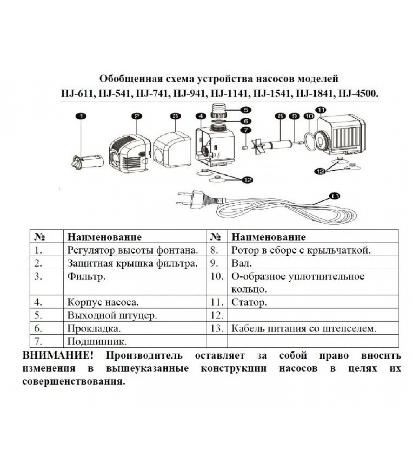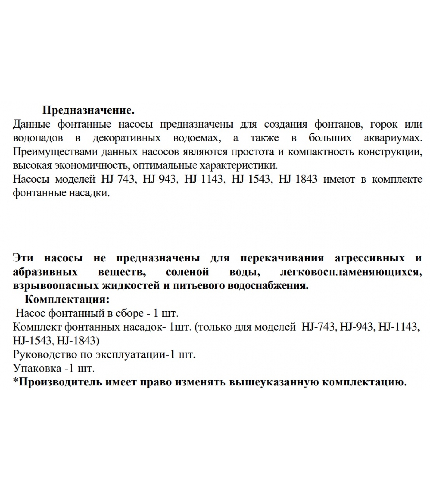 Насос Vodotok HJ-1841 - предназначен для создания фонтанов, горок или водопадов в декоративных водоемах, а также в больших аквариумах. Преимуществами данных насосов являются простота и компактность конструкции, высокая экономичность, оптимальные характеристики.