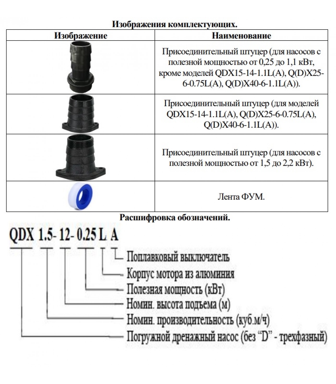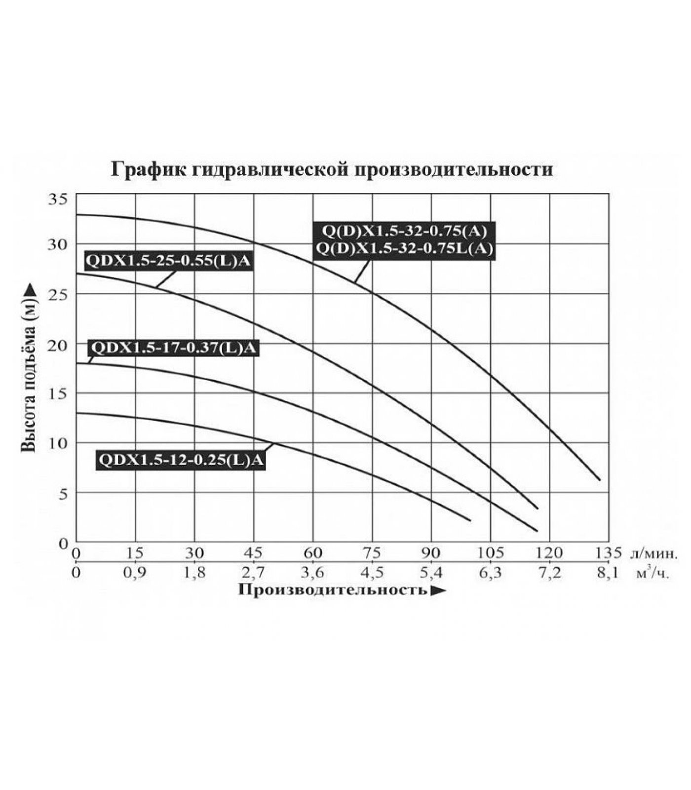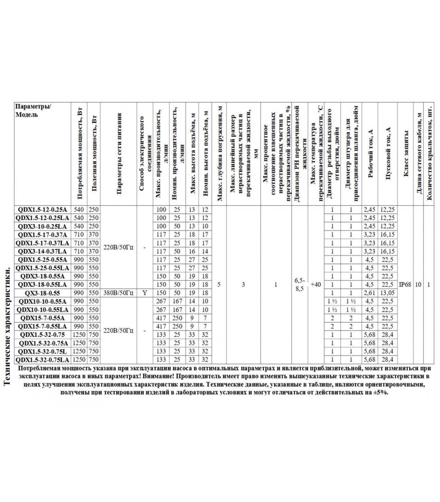 Насос для колодцев "LEO" QDX 1.5-32-0.75А (с поплавком) (750Вт, max 10.5м3/ч, ном. 1.5м3/ч, H-31.5м, d штуцера 25мм).