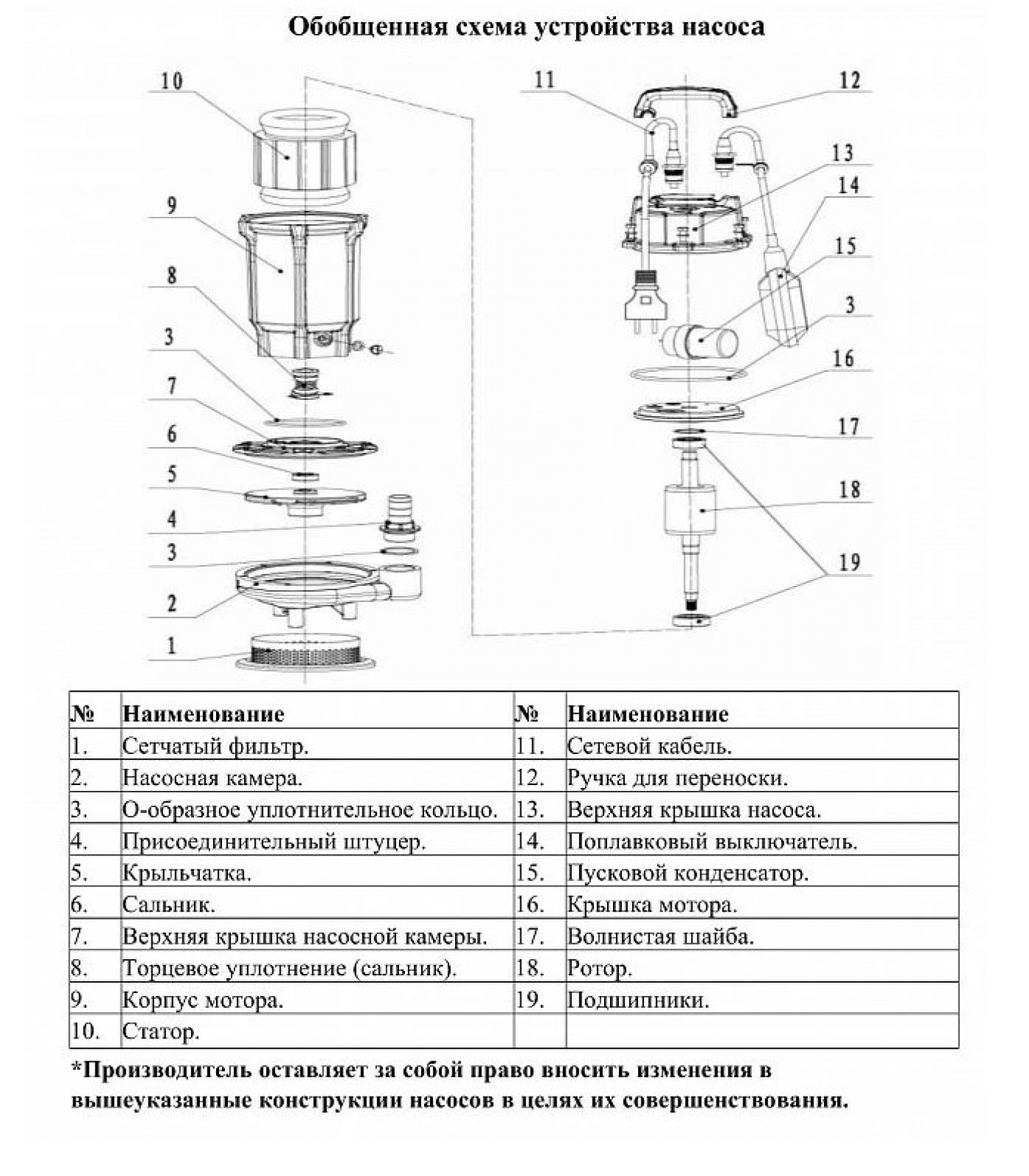Двигатель насоса заполнен пищевым минеральным маслом, защищающим его от перегрева и улучшающим характеристики.