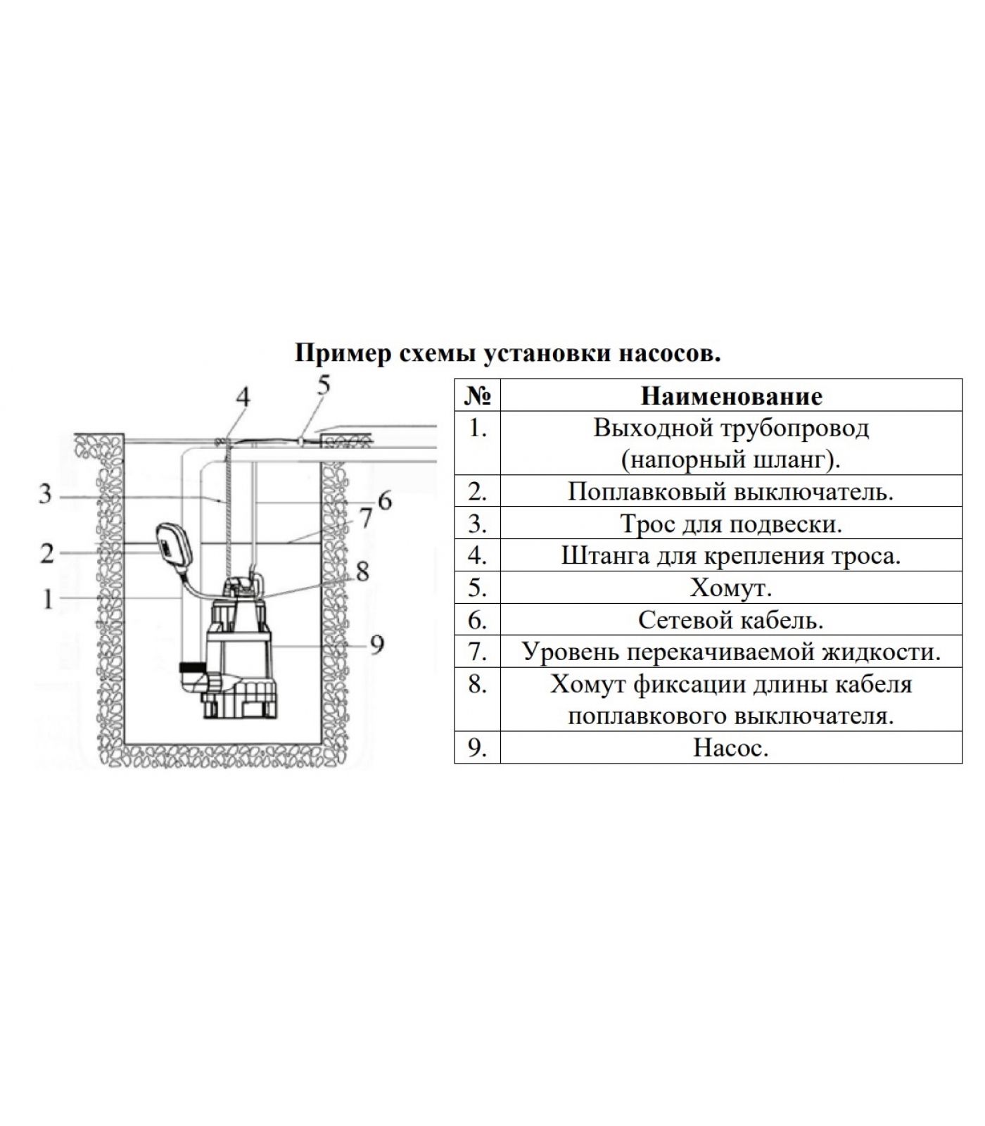 Насос снабжен поплавковым выключателем, автоматически отключающим насос при отсутствии и автоматически включающим насос при наличии жидкости для перекачивания.