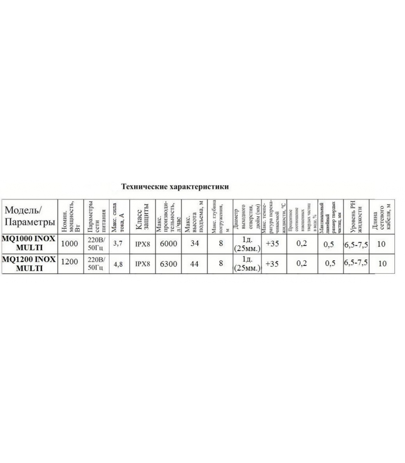 Насос модели MQ1200 INOX MULTI оснащен четырьмя крыльчатками, которые обеспечивают большое преимущество в производительности и высоте подъема по сравнению с аналогичными моделями, оснащенными одной крыльчаткой.