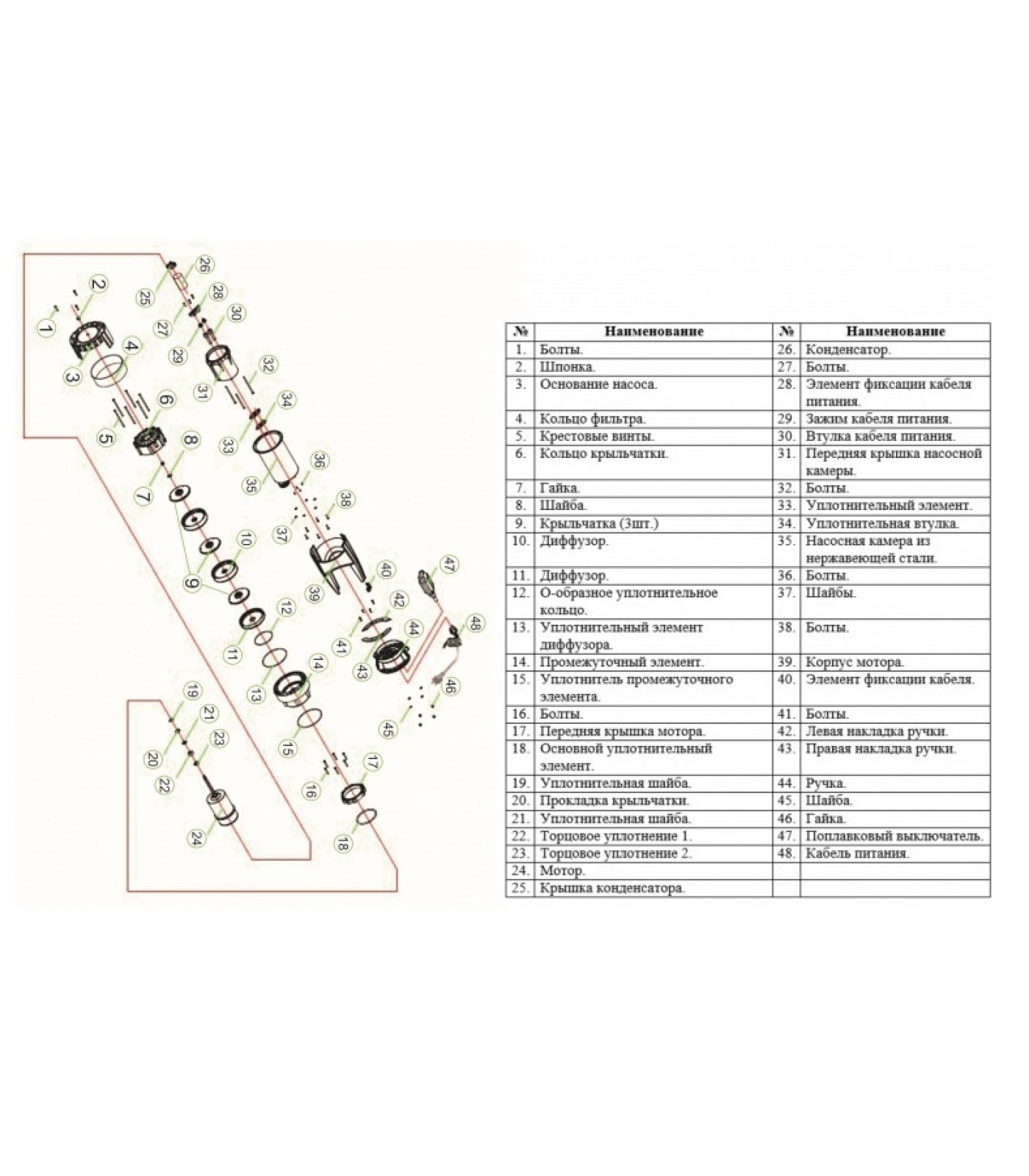 - Центробежный погружной насос – 1шт.