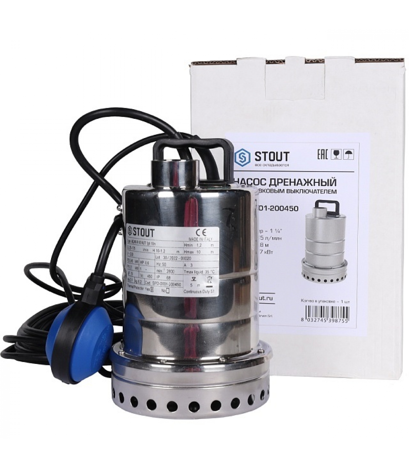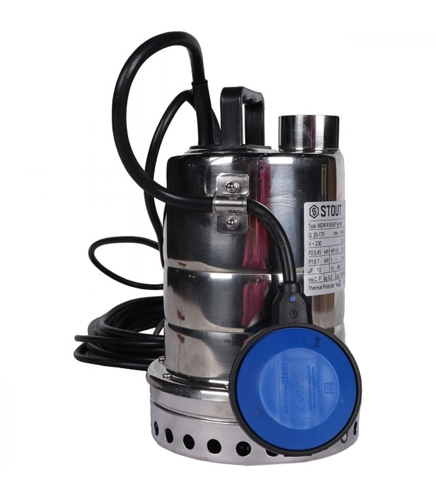 Насос дренажный STOUT с поплавком, кабель 10 м, 230V, Q=175 л/мин, H=10 м