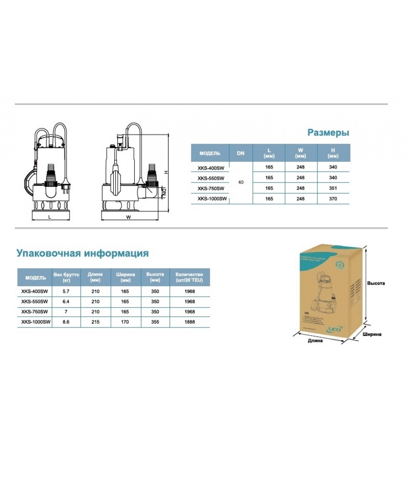 Насос XKS-750SW дренажный LEO с корпусом из нержавеющей стали