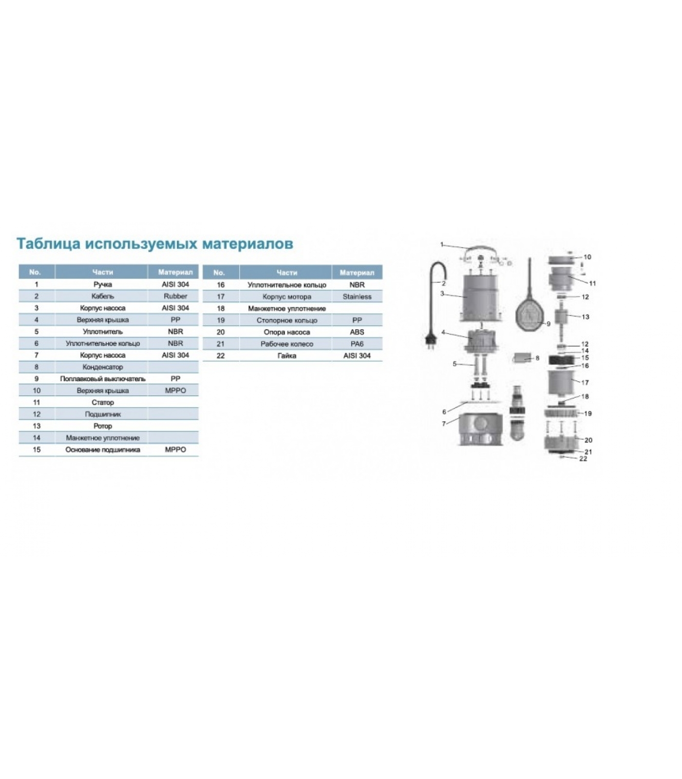 Наличие поплавкового выключателя обеспечивает работу насоса в автоматическом режиме и защиту от работы без воды.