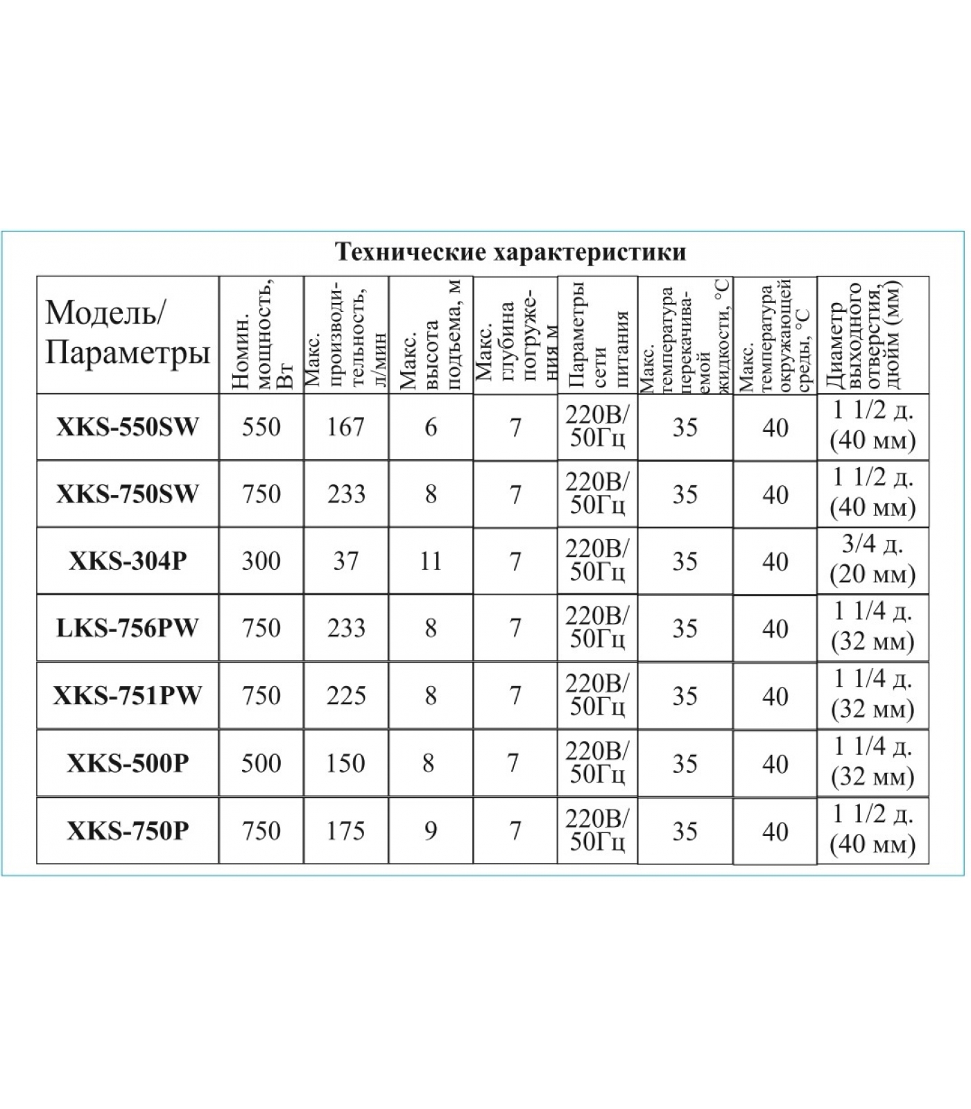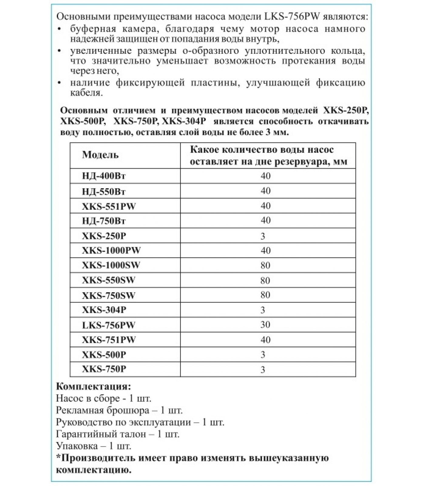 Насос способны перекачивать воду с содержанием механических примесей до 5% от объема воды. Линейный размер примесей должен быть не более 35 мм.