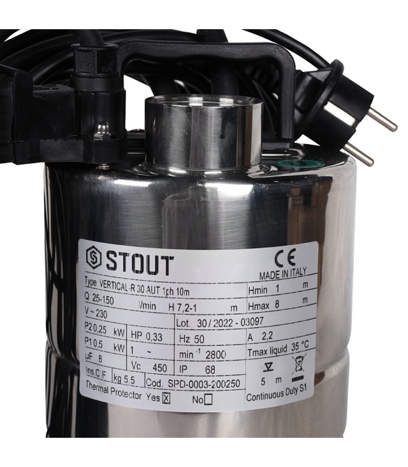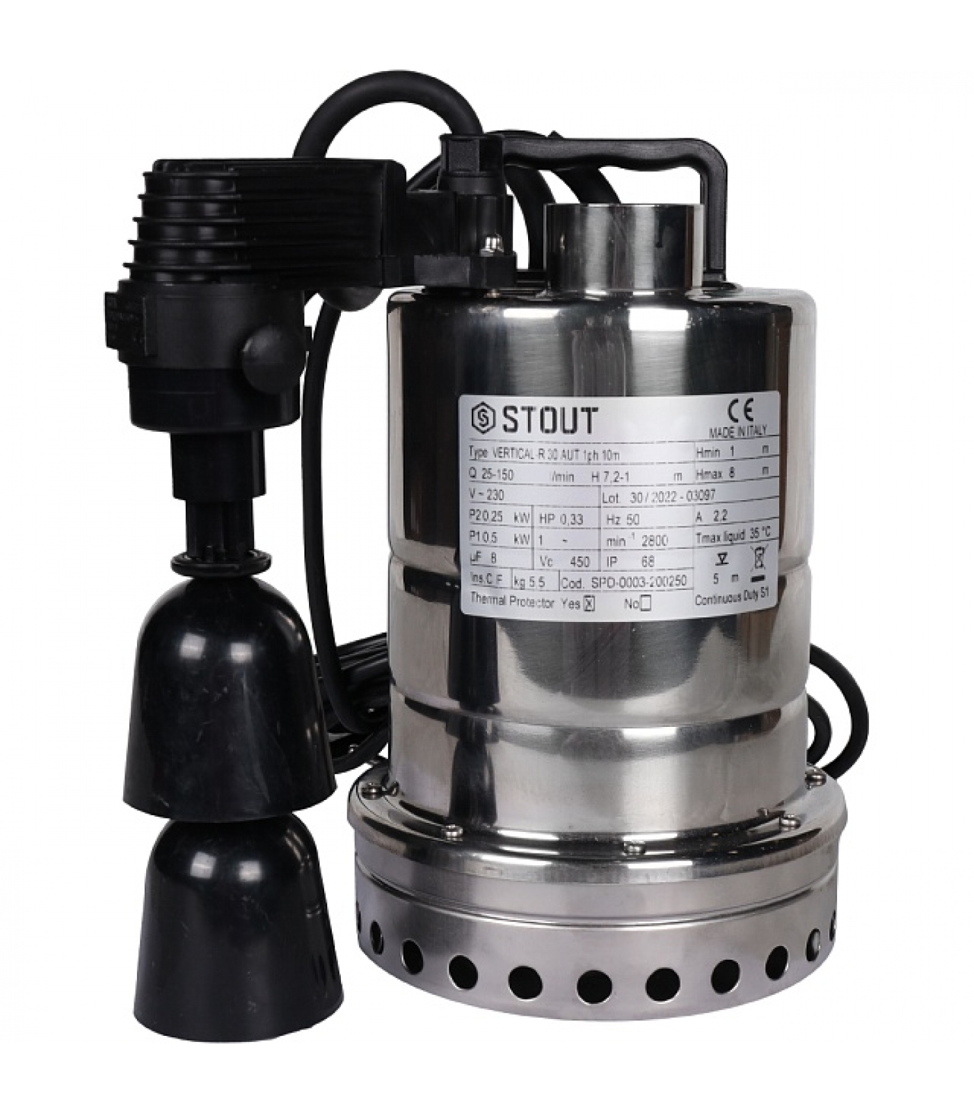 Насос для водоотведения Stout с вертикальным поплавком SPD-0003 0,25 кВт - используется в установках для осушения и дренажа. Основными сферами применения являются: откачивание воды из затапливаемых подвальных помещений (дренаж гаражей, автостоянок, тоннелей и т. д.), откачивание хозяйственно-бытовых стоков, откачивание воды из рек и прудов, откачивание воды, возникшей в результате аварийных и стихийных бедствий, аэрация прудов, циркуляция воды в искусственных водоемах, системы дренажа в сложных технических устройствах и сооружениях.
