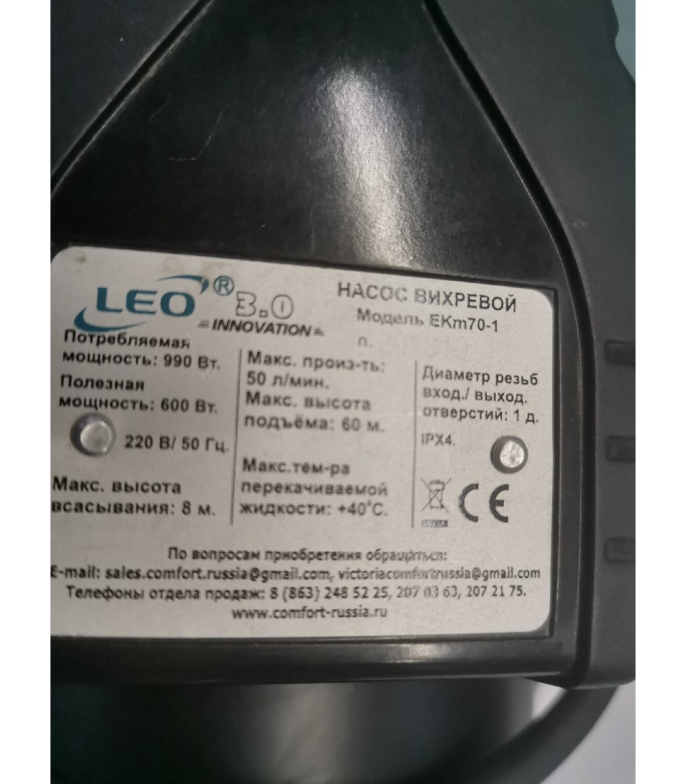 Насос EKm 70-1 поверхностный вихревой LEO, Уценка