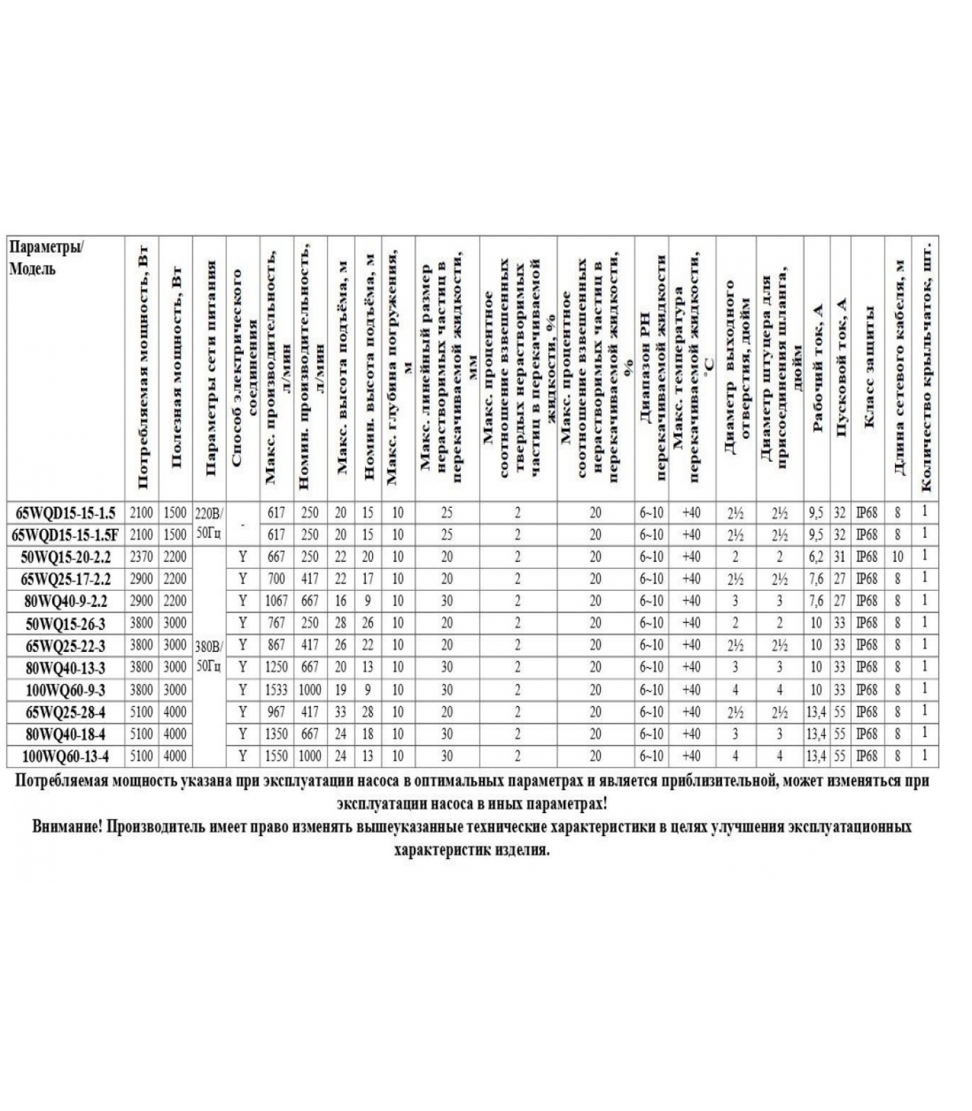 Насосы серии WQD-F снабжены поплавковым выключателем, автоматически отключающим насос при отсутствии и автоматически включающим насос при наличии жидкости для перекачивания.