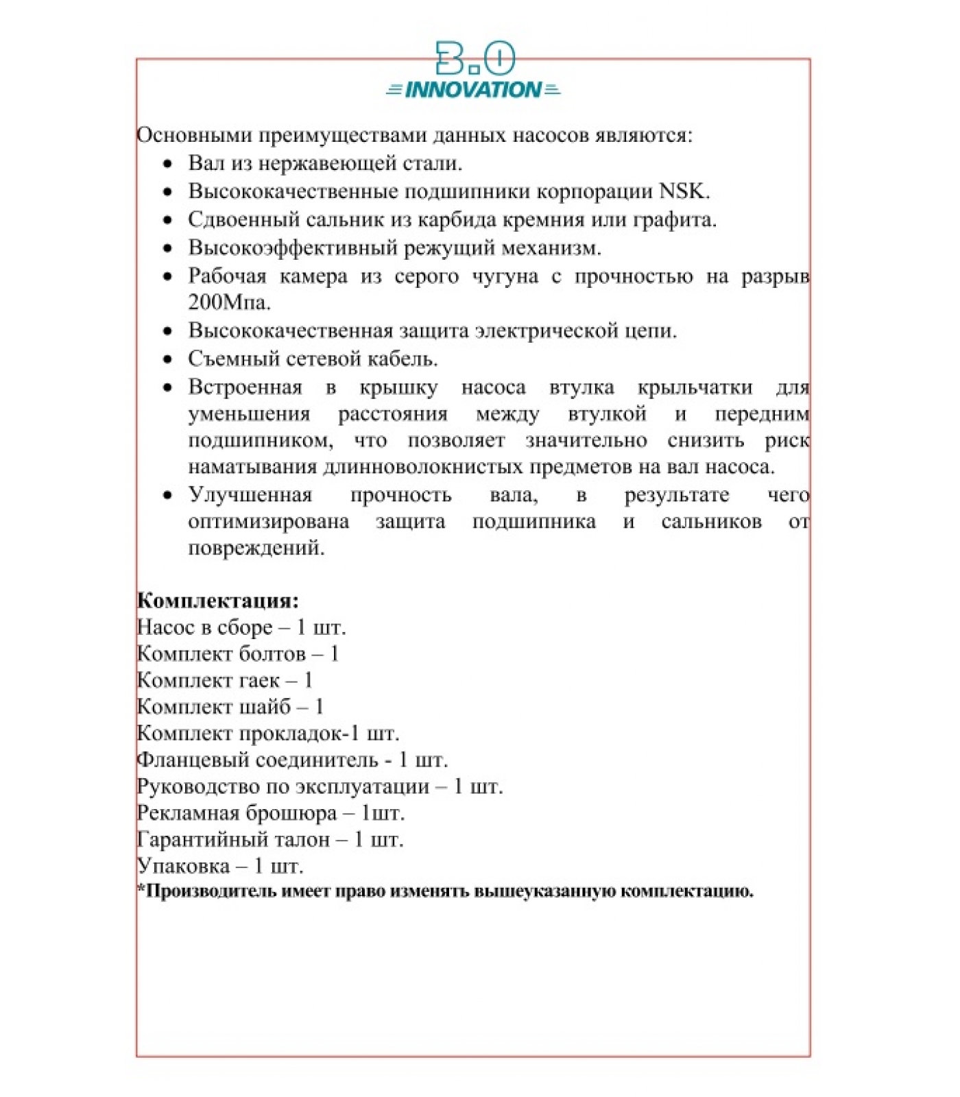 Основными преимуществами насоса являются: