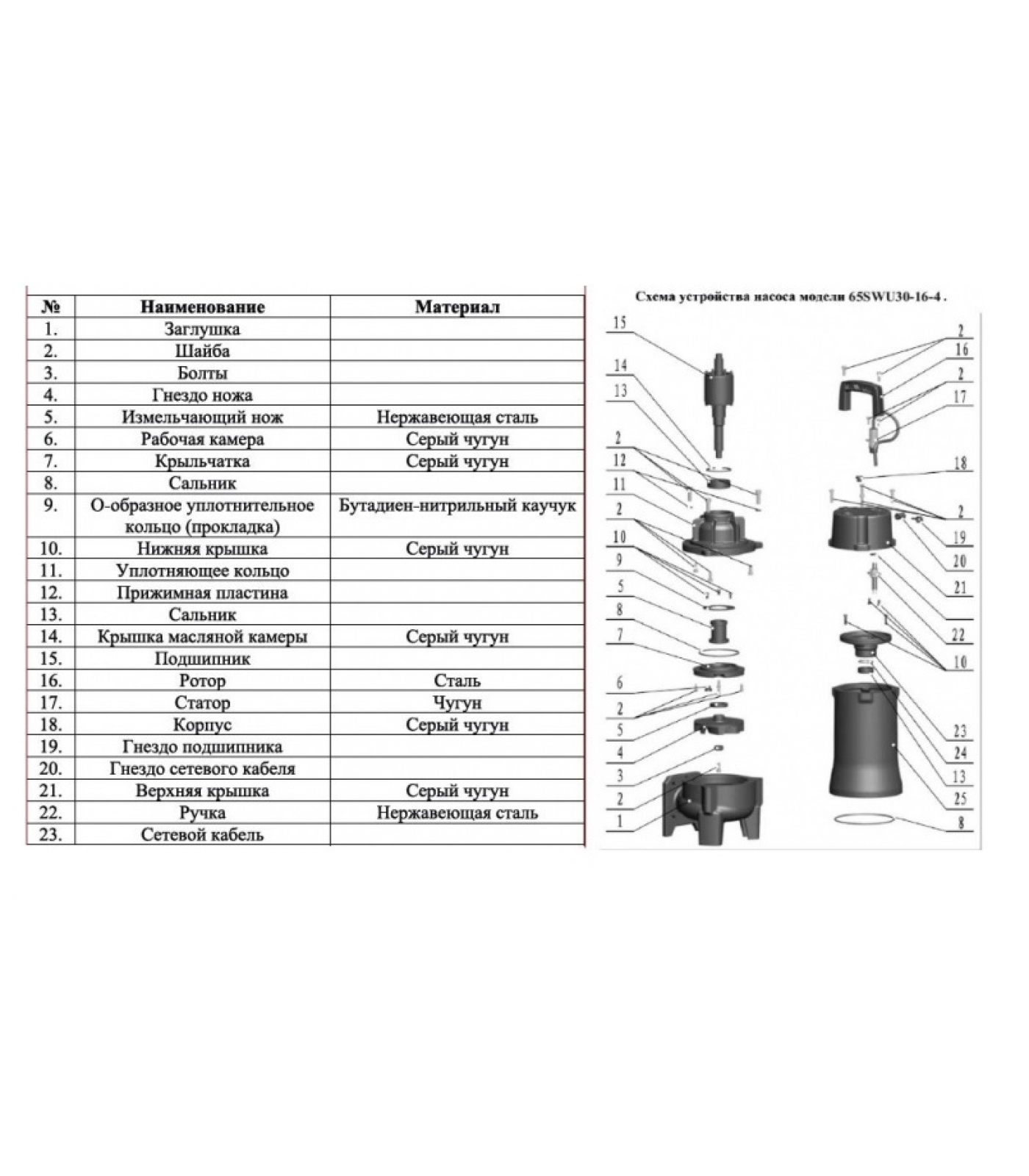 Насосы фекальные с крыльчаткой из чугуна, способной измельчать примеси.