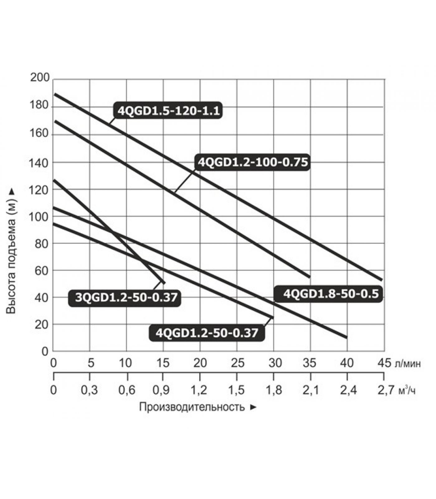 Напор max 190 м.