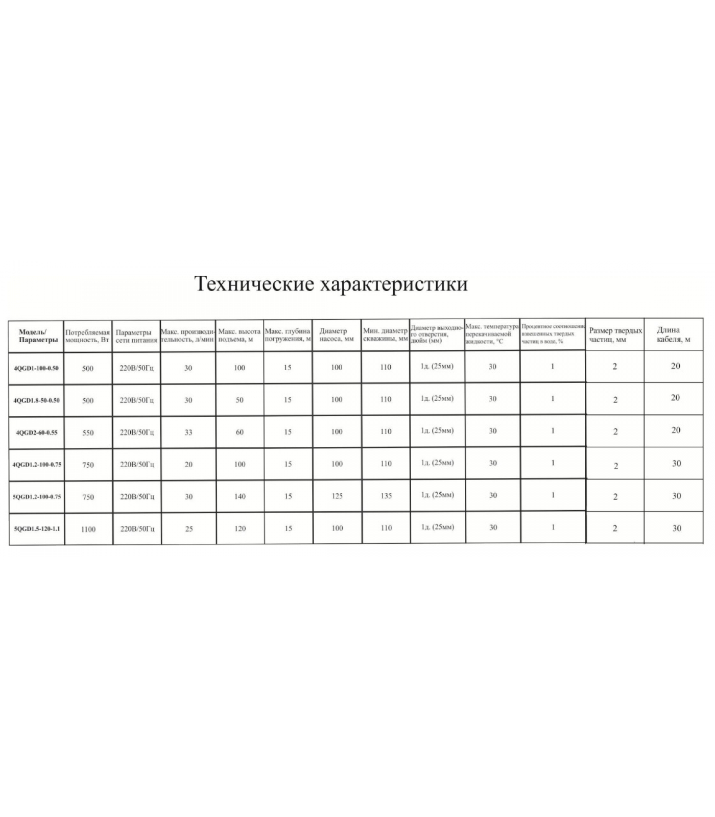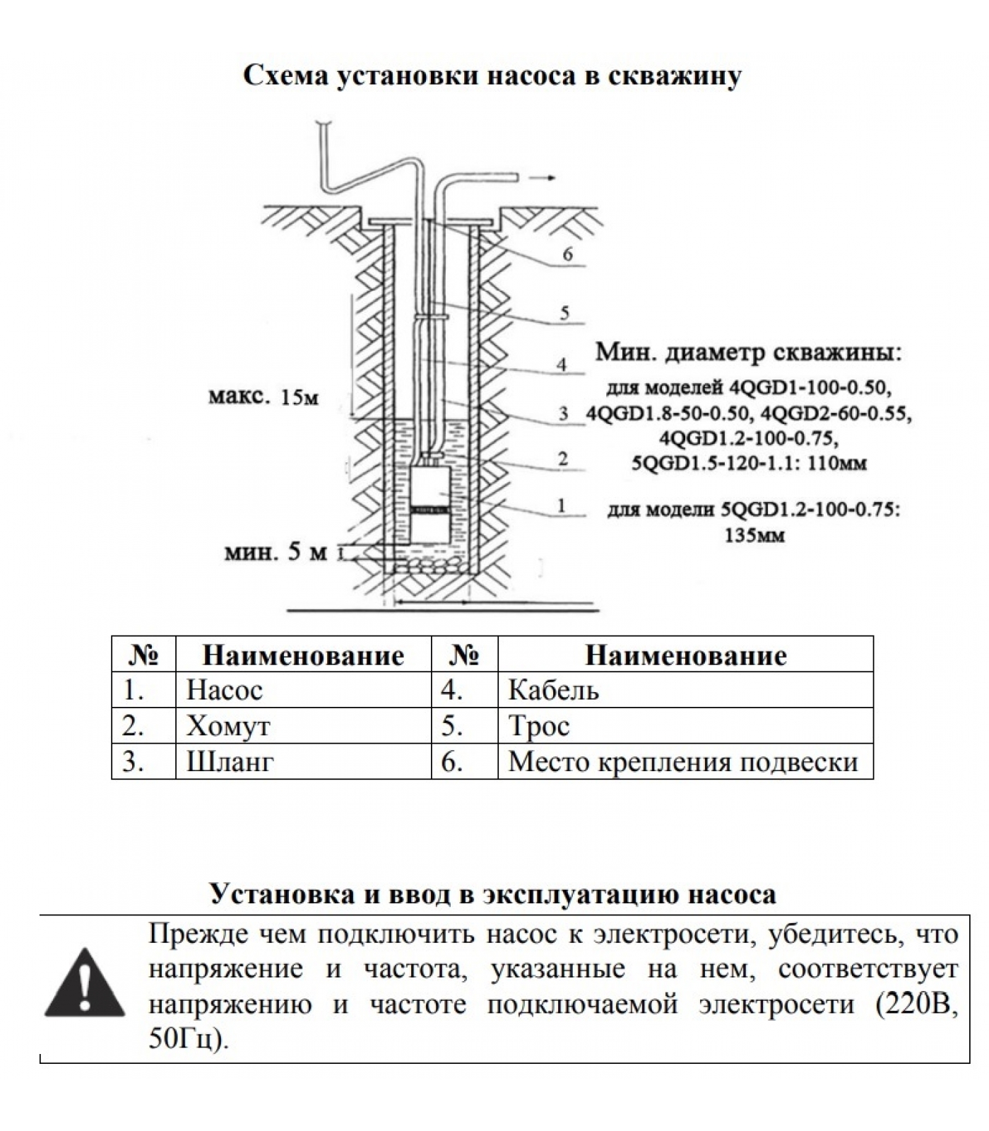 Максимальная глубина погружения насоса 50 м