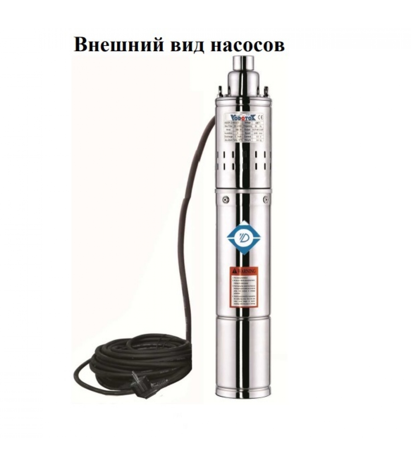 Насос погружной винтовой "Vodotok" 4QGD 1.8-50-0.5 каб.12м (d-95мм, 500Вт, 40л/мин, H-107м, d отв.1", до 3%, каб.12м)